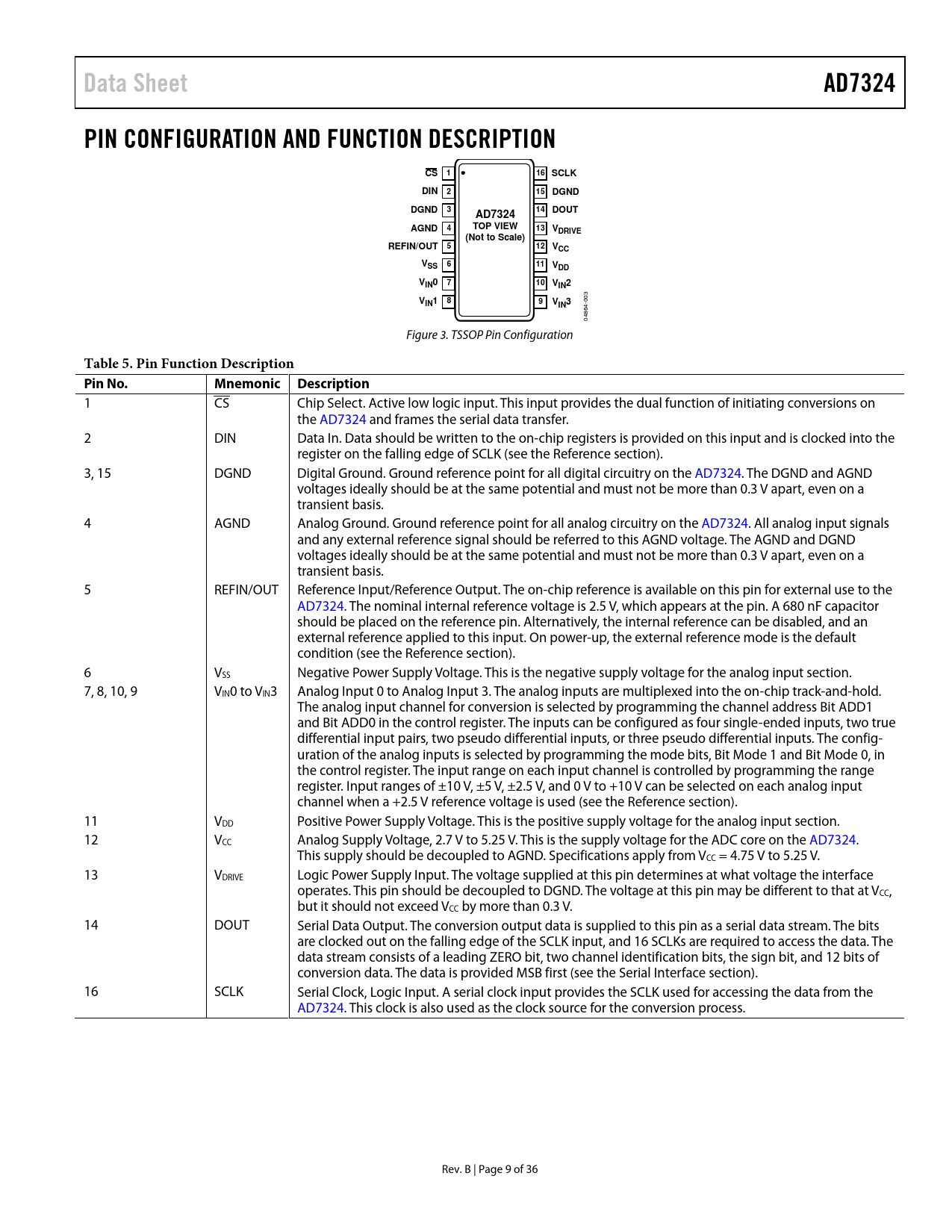 Pages / Page37 / 10 — Data Sheet. AD7324. PIN CONFIGURATION AND FUNCTION DESCRIPTION. 16 SCLK. …