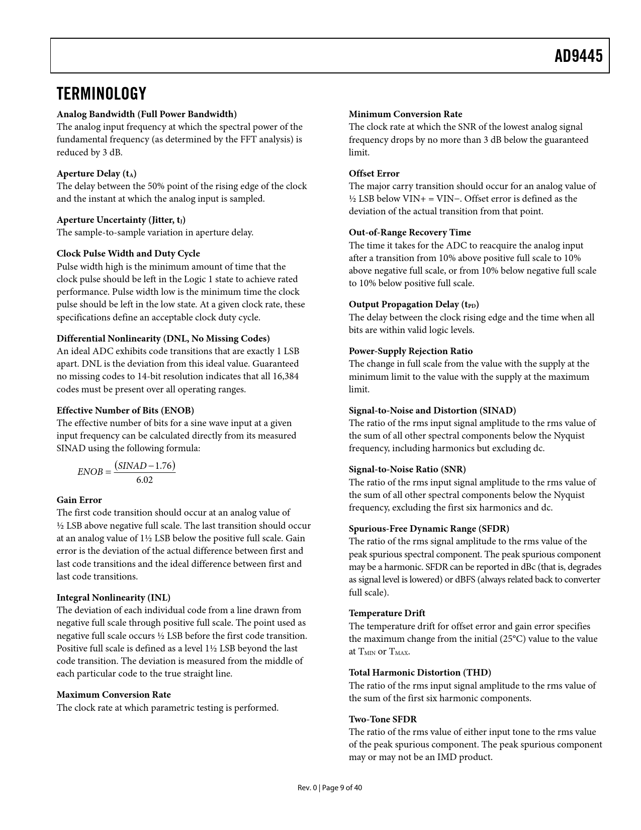 Pages / Page41 / 10 — AD9445. TERMINOLOGY Analog Bandwidth (Full Power Bandwidth). Minimum …