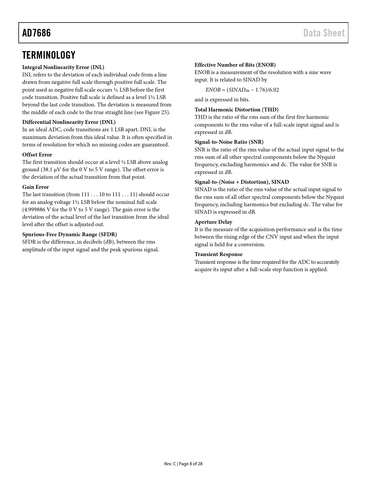 AD7686 Data Sheet TERMINOLOGY Integral Nonlinearity Error (INL) Effective Number of Bits (ENOB)