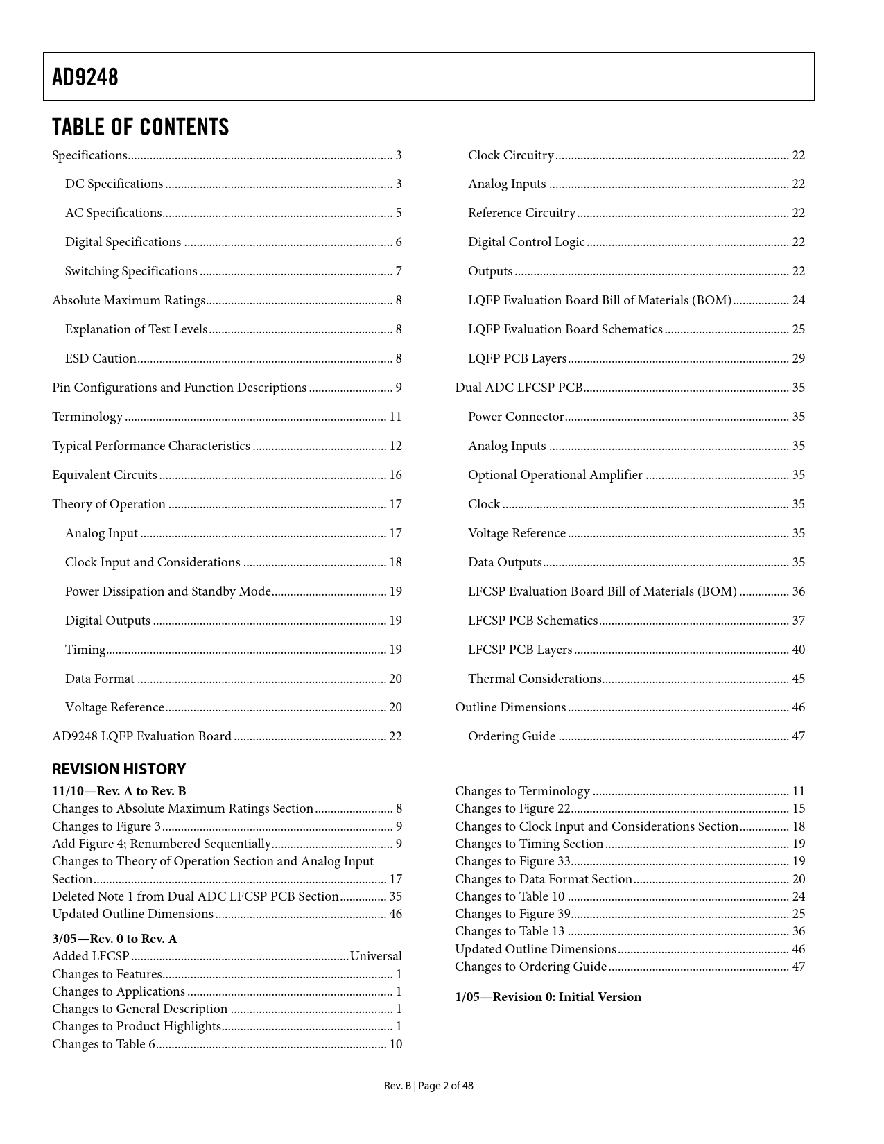 AD9248. TABLE OF CONTENTS. REVISION HISTORY. 11/10—Rev. A to Rev. B. 3/05—Rev. 0 to Rev. A. 1/05—Revision 0: Initial Version