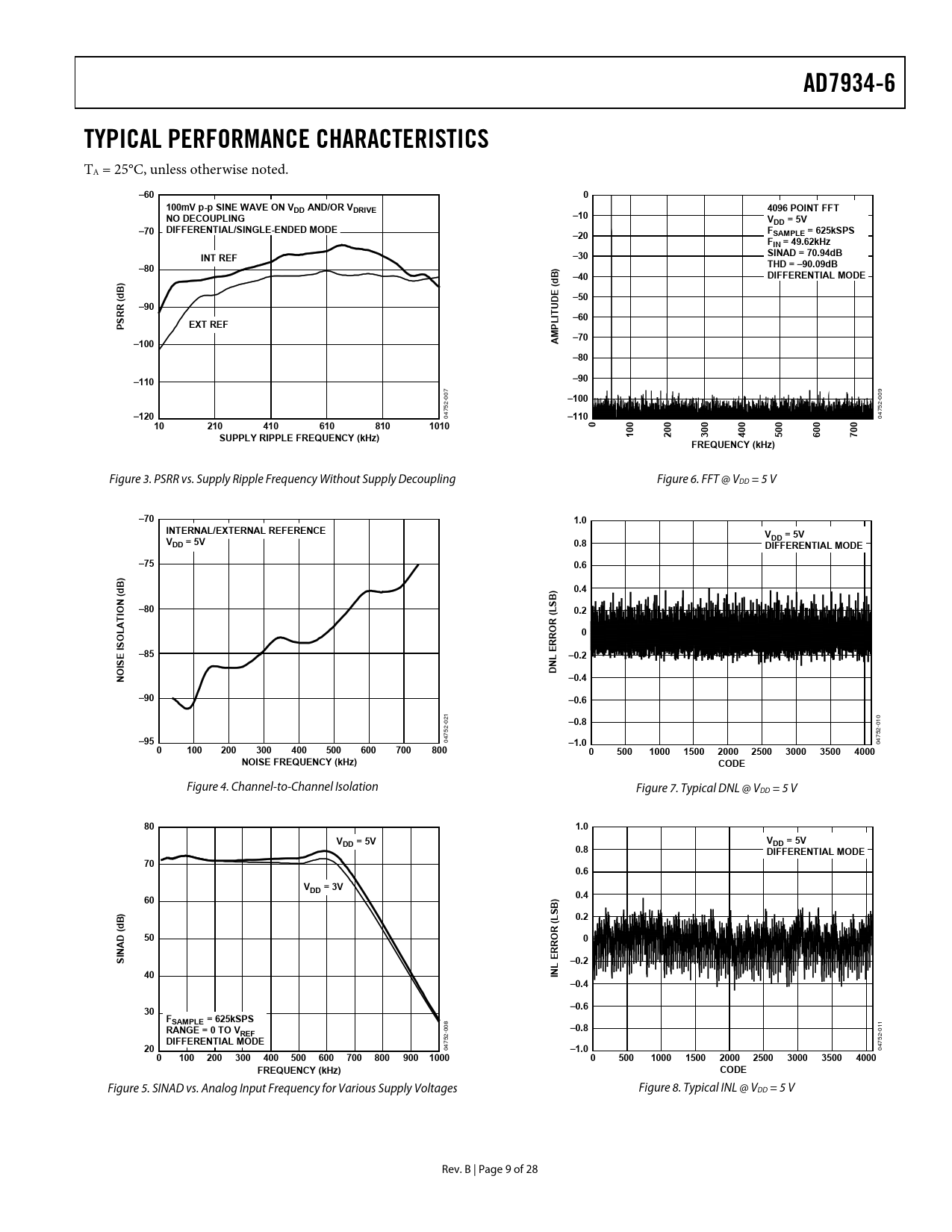 AD7934-6. TYPICAL PERFORMANCE CHARACTERISTICS. –60. 100mV p-p SINE WAVE ON VDD AND/OR VDRIVE. 4096 POINT FFT. NO DECOUPLING. –10