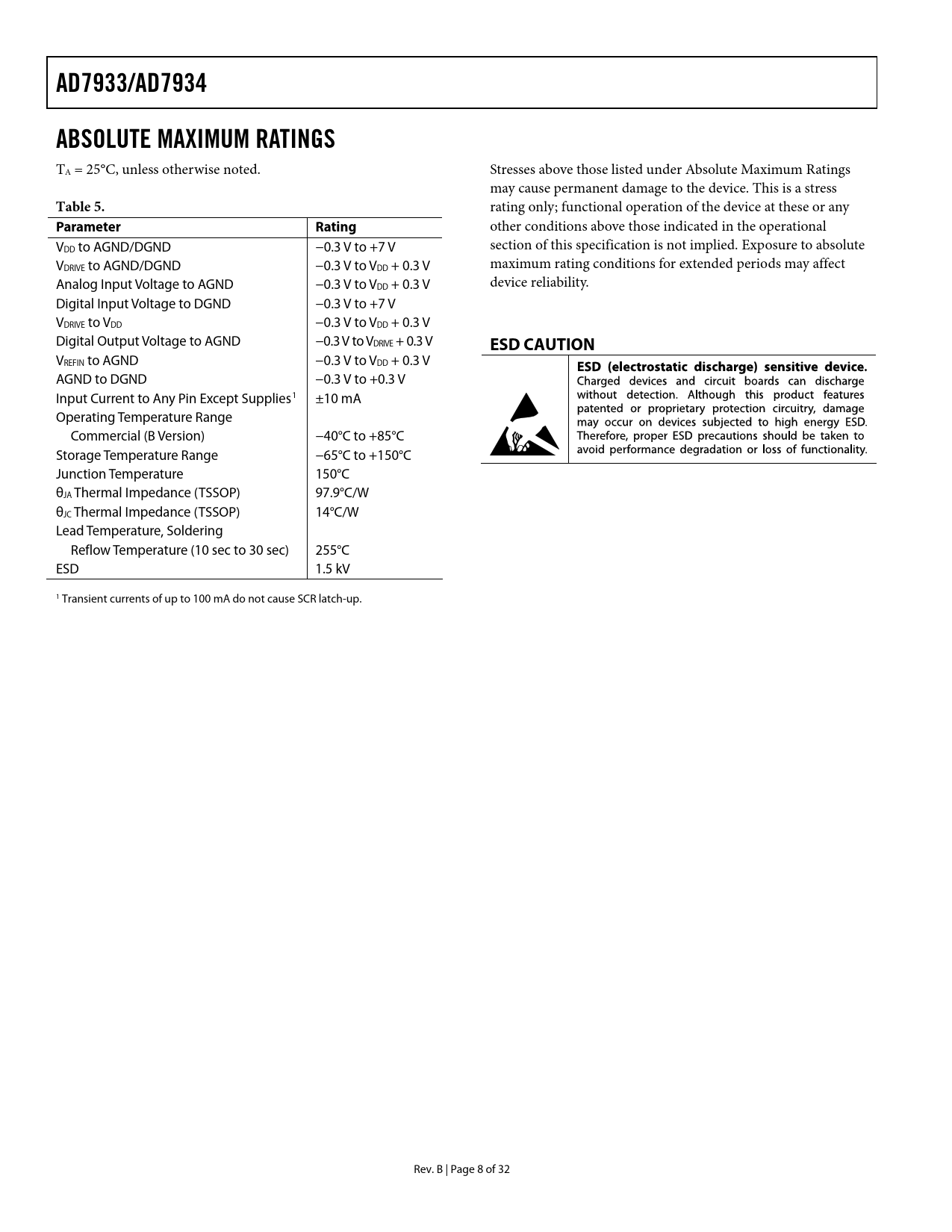 AD7933/AD7934. ABSOLUTE MAXIMUM RATINGS. Table 5. Parameter Rating. ESD CAUTION