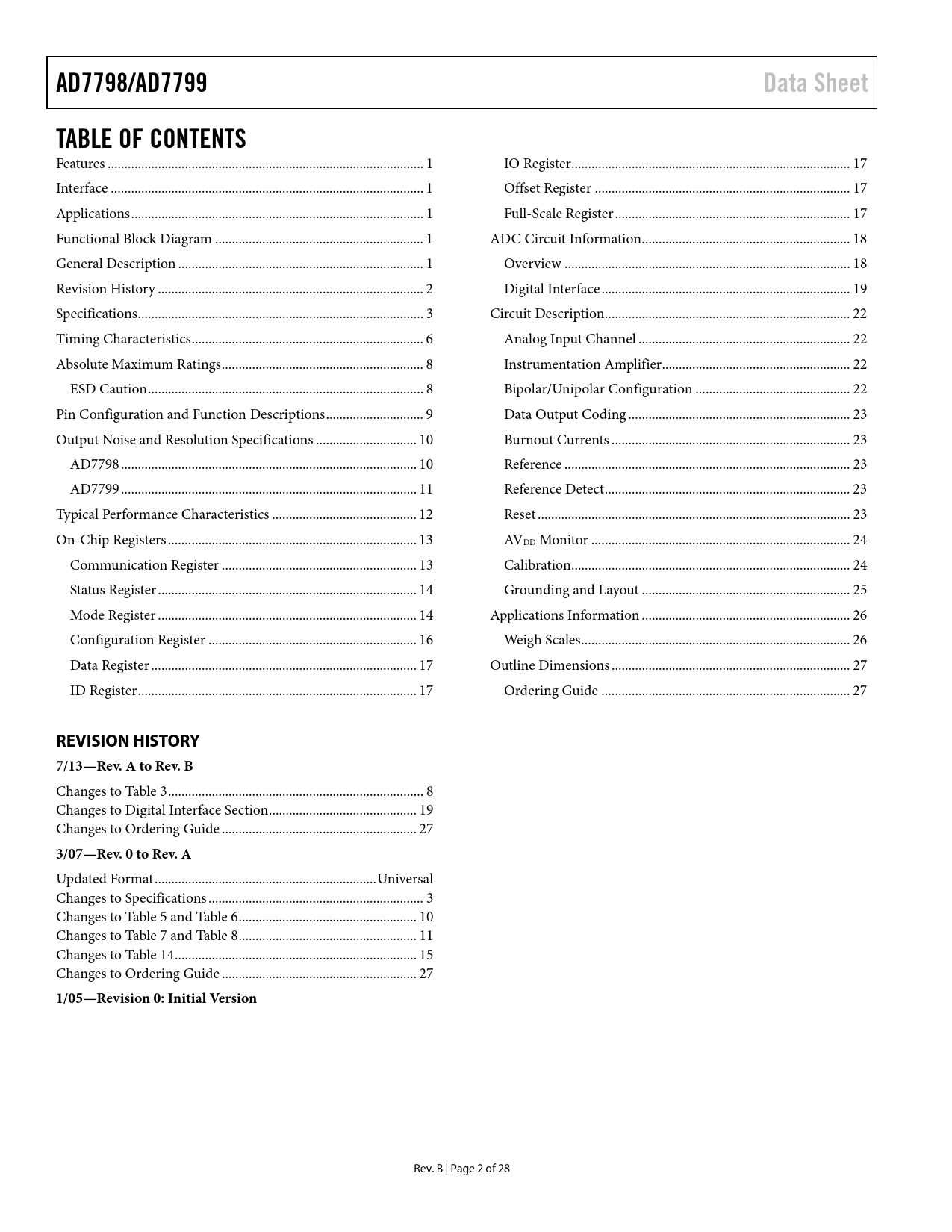 Pages / Page28 / 2 — AD7798/AD7799. Data Sheet. TABLE OF CONTENTS. REVISION HISTORY 7/13—Rev. …