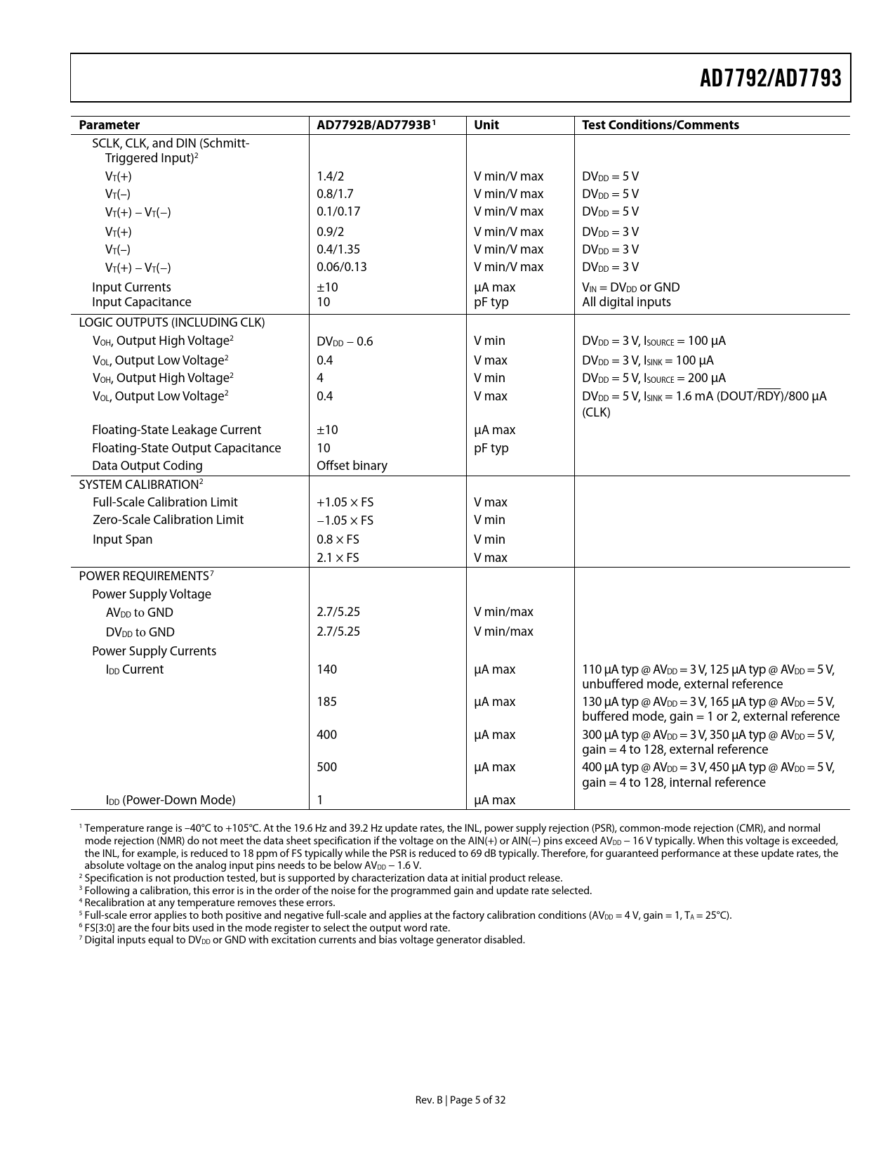 Pages / Page32 / 5 — AD7792/AD7793. Parameter. AD7792B/AD7793B1. Unit. Test Conditions/Comments