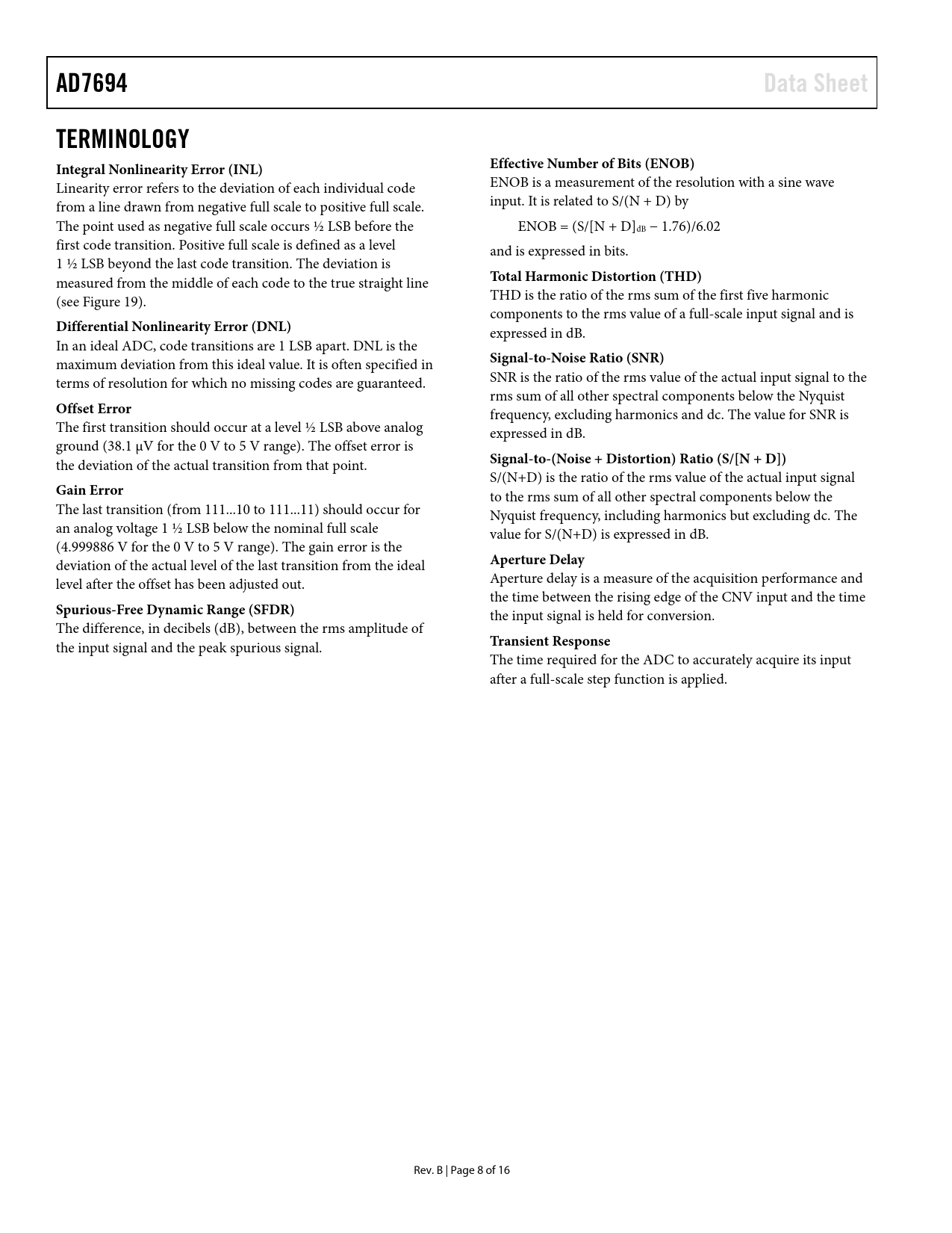 AD7694. Data Sheet. TERMINOLOGY Integral Nonlinearity Error (INL). Effective Number of Bits (ENOB)