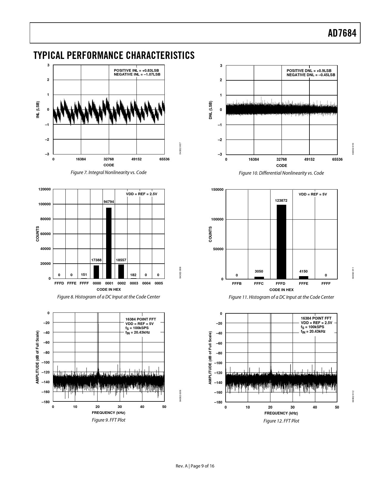 AD7684. TYPICAL PERFORMANCE CHARACTERISTICS. POSITIVE INL = +0.83LSB. POSITIVE DNL = +0.9LSB. NEGATIVE INL = –1.07LSB