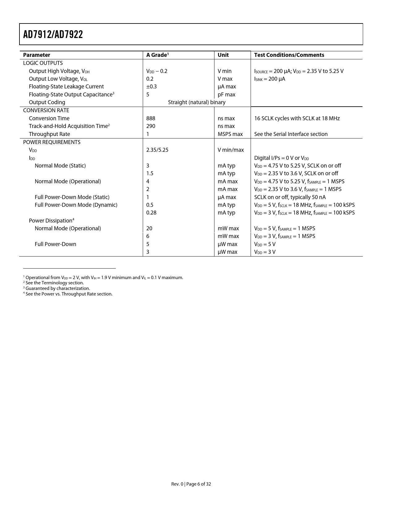 Pages / Page32 / 6 — AD7912/AD7922. Parameter A. Grade1. Unit. Test Conditions/Comments