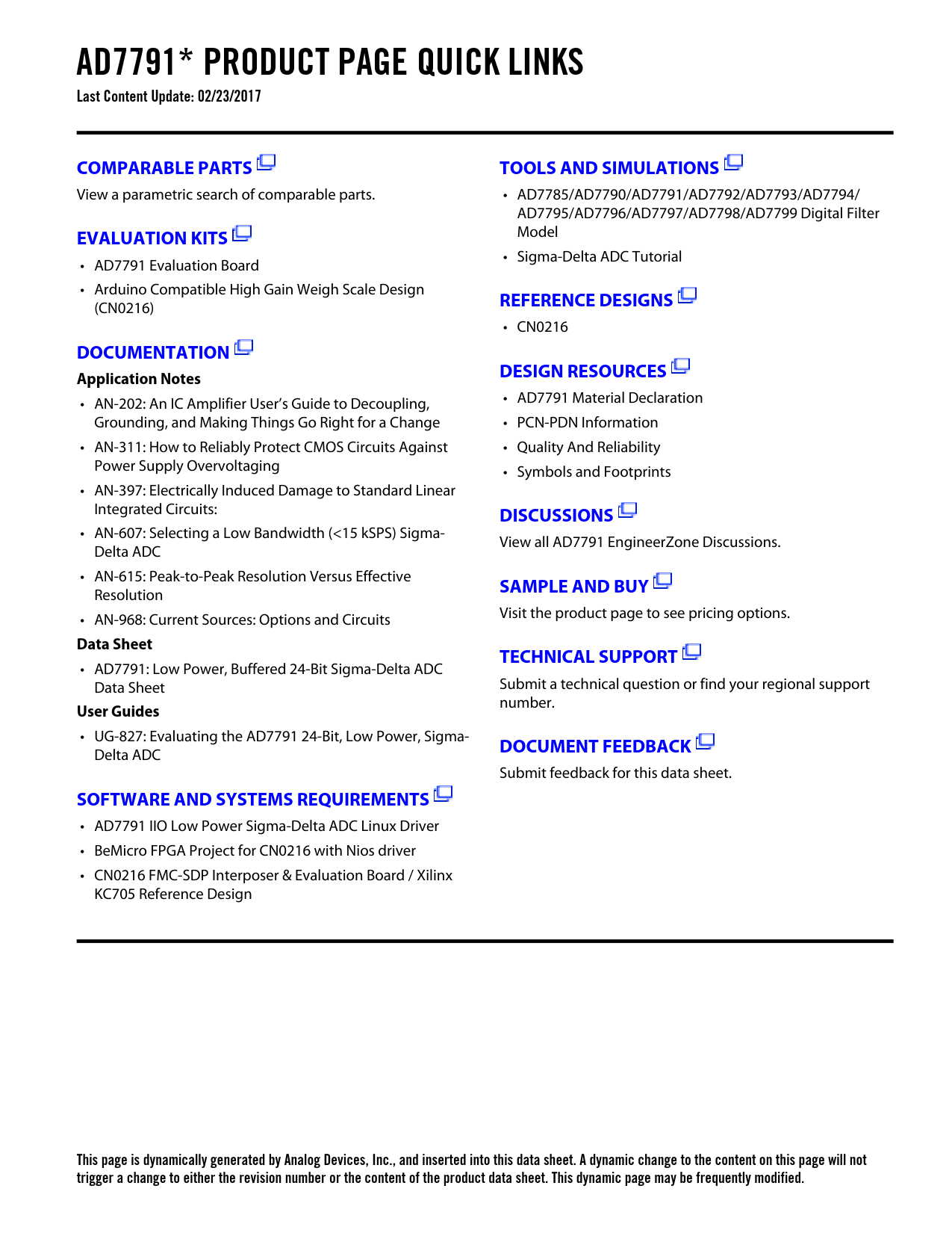 This page is dynamically generated by Analog Devices, Inc., and inserted into this data sheet. A dynamic change to the content on this page will not trigger a change to either the revision number or the content of the product data sheet. This dynamic page may be frequently modified.