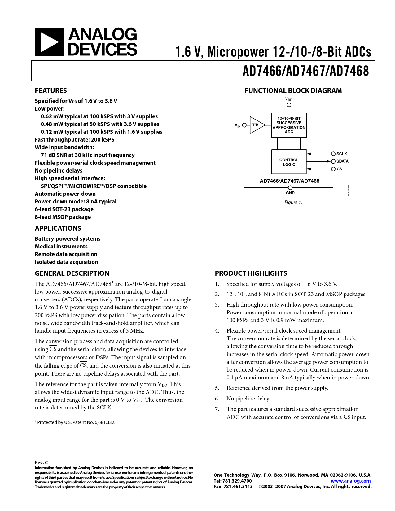 Datasheet AD7466, AD7467, AD7468 (Analog Devices)