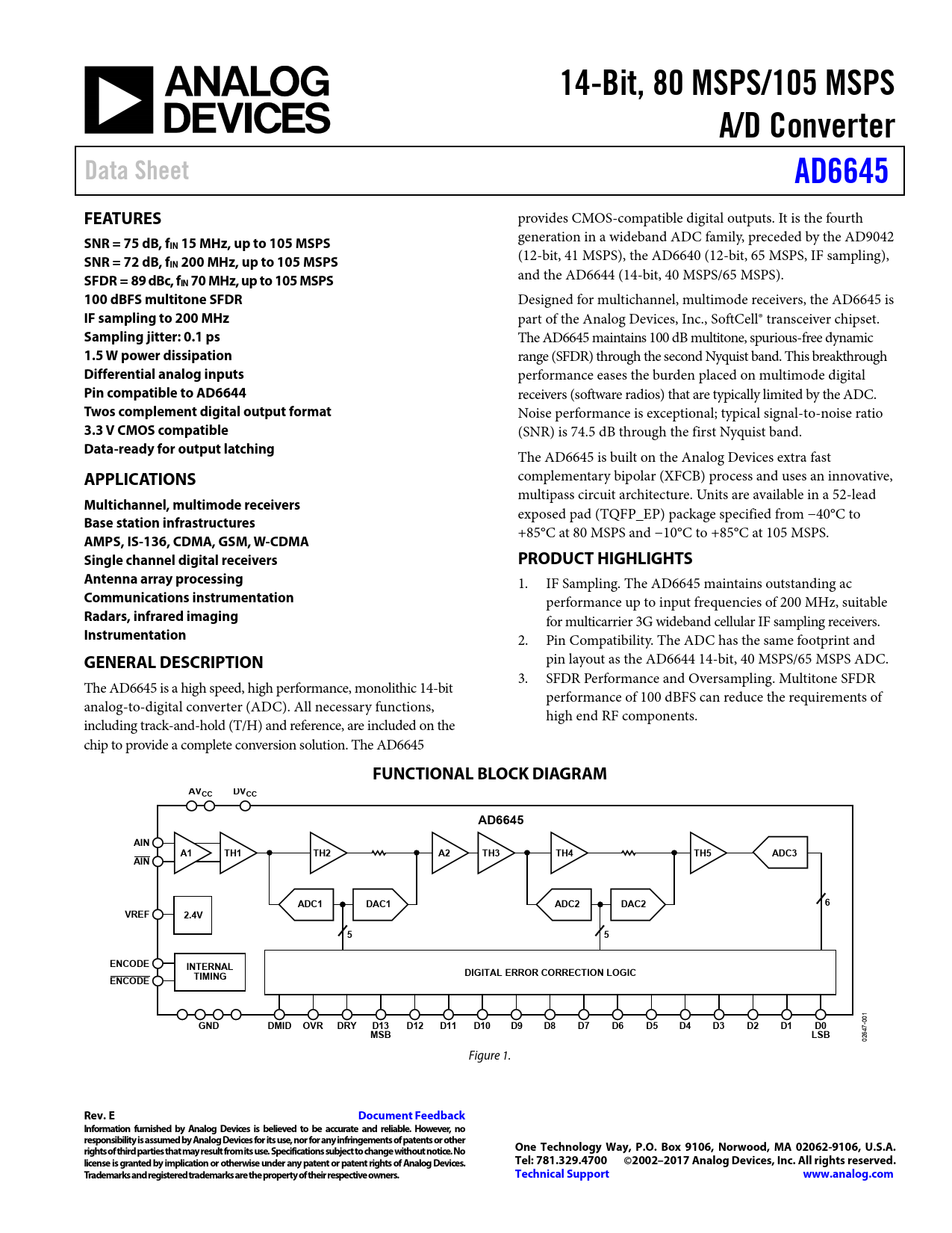 | Pages / Page | 25 / 1 — 14-Bit, 80 MSPS/105 MSPS. A/D Converter. Data Sheet. AD6645. FEATURES. … |