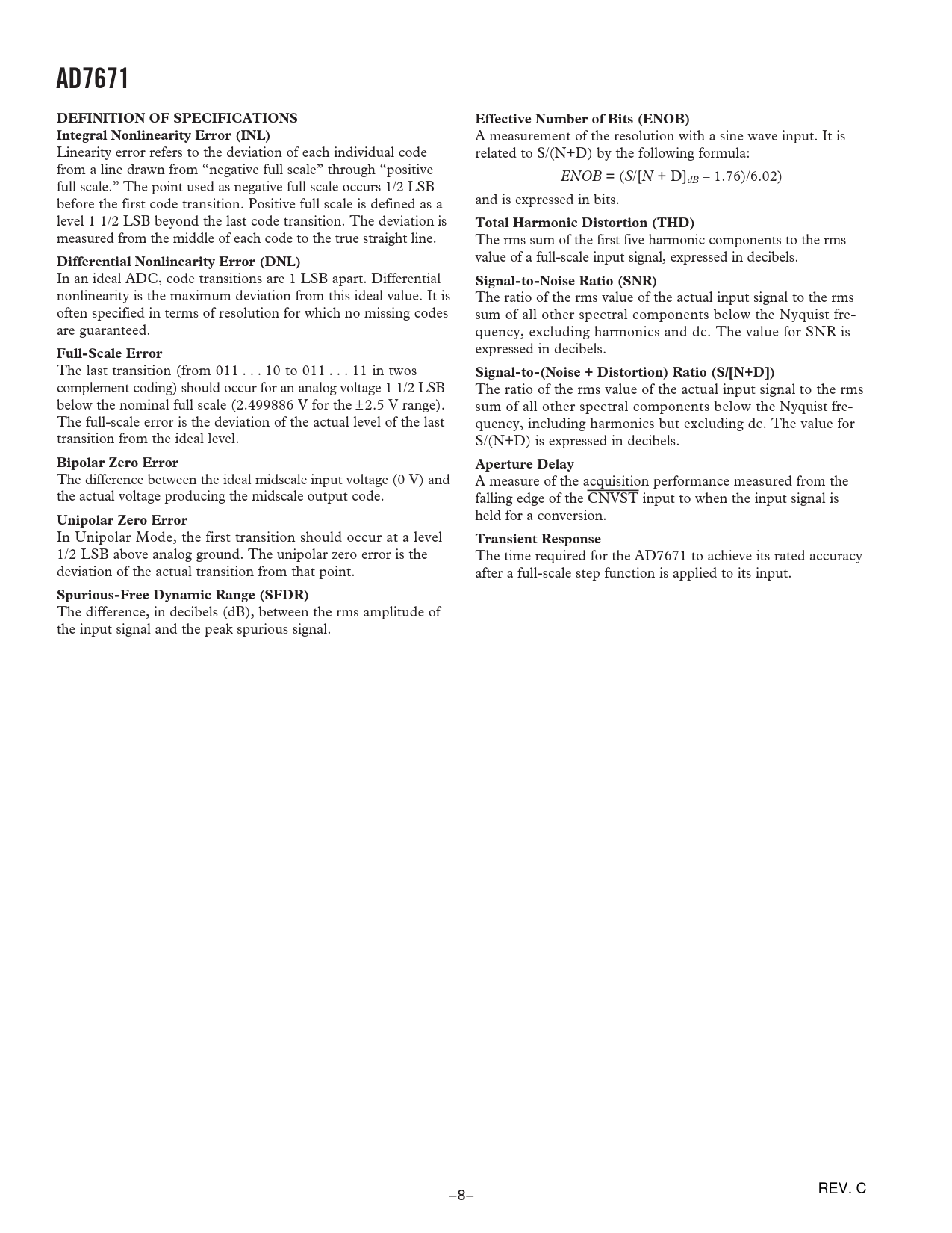 Pages / Page25 / 9 — AD7671. DEFINITION OF SPECIFICATIONS. Effective Number of Bits (ENOB). …