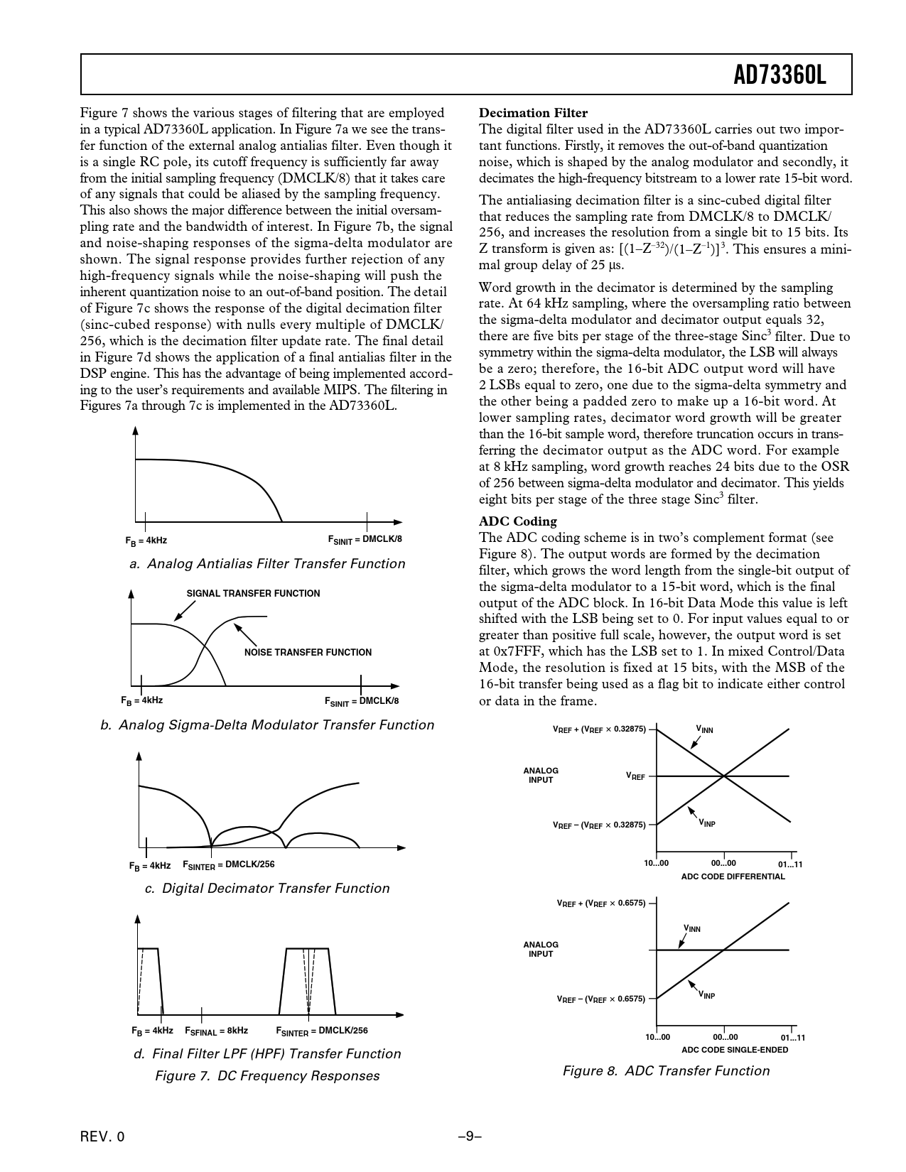 AD73360L. Decimation Filter. ADC Coding. B = 4kHz. FSINIT = DMCLK/8. SIGNAL TRANSFER FUNCTION. NOISE TRANSFER FUNCTION. FB = 4kHz