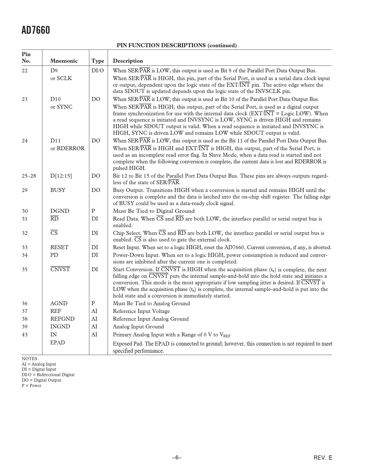 AD7660 PIN FUNCTION DESCRIPTIONS (continued) Pin No Mnemonic Type Description