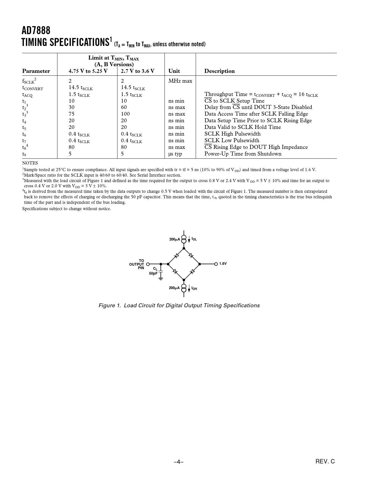 Figure 1. Load Circuit for Digital Output Timing Specifications –4– REV. C
