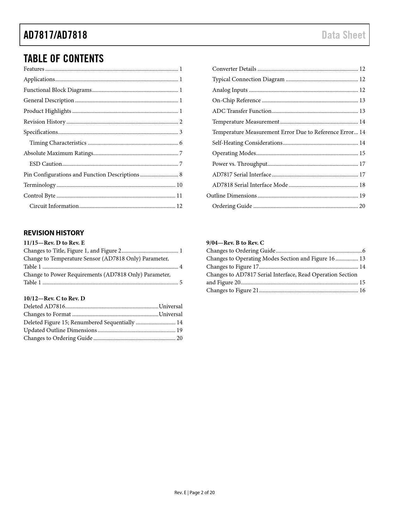 AD7817/AD7818 Data Sheet TABLE OF CONTENTS REVISION HISTORY 11/15—Rev D to Rev E 9/04—Rev B to Rev C