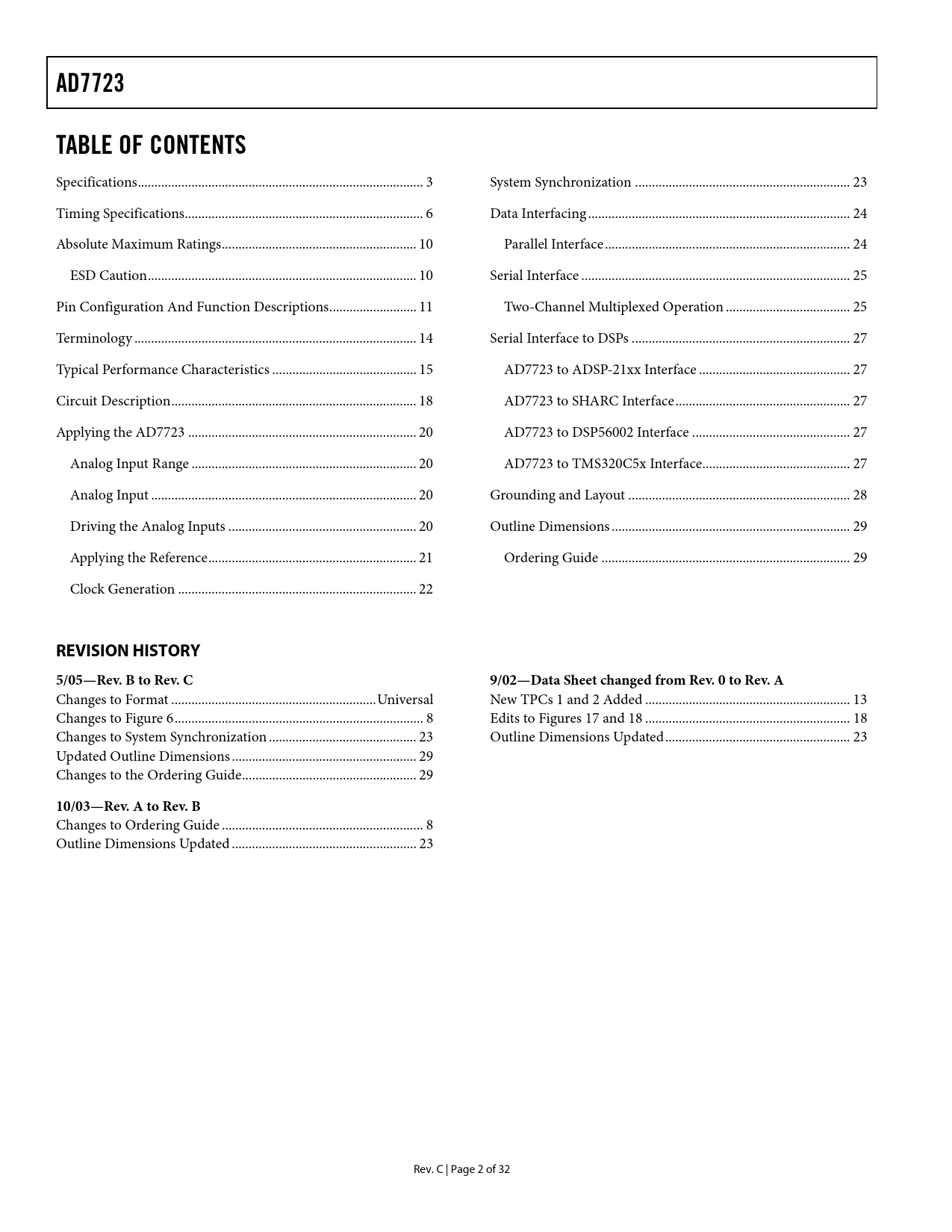 Pages / Page33 / 3 — AD7723. TABLE OF CONTENTS. REVISION HISTORY. 5/05—Rev. B to Rev. C. …
