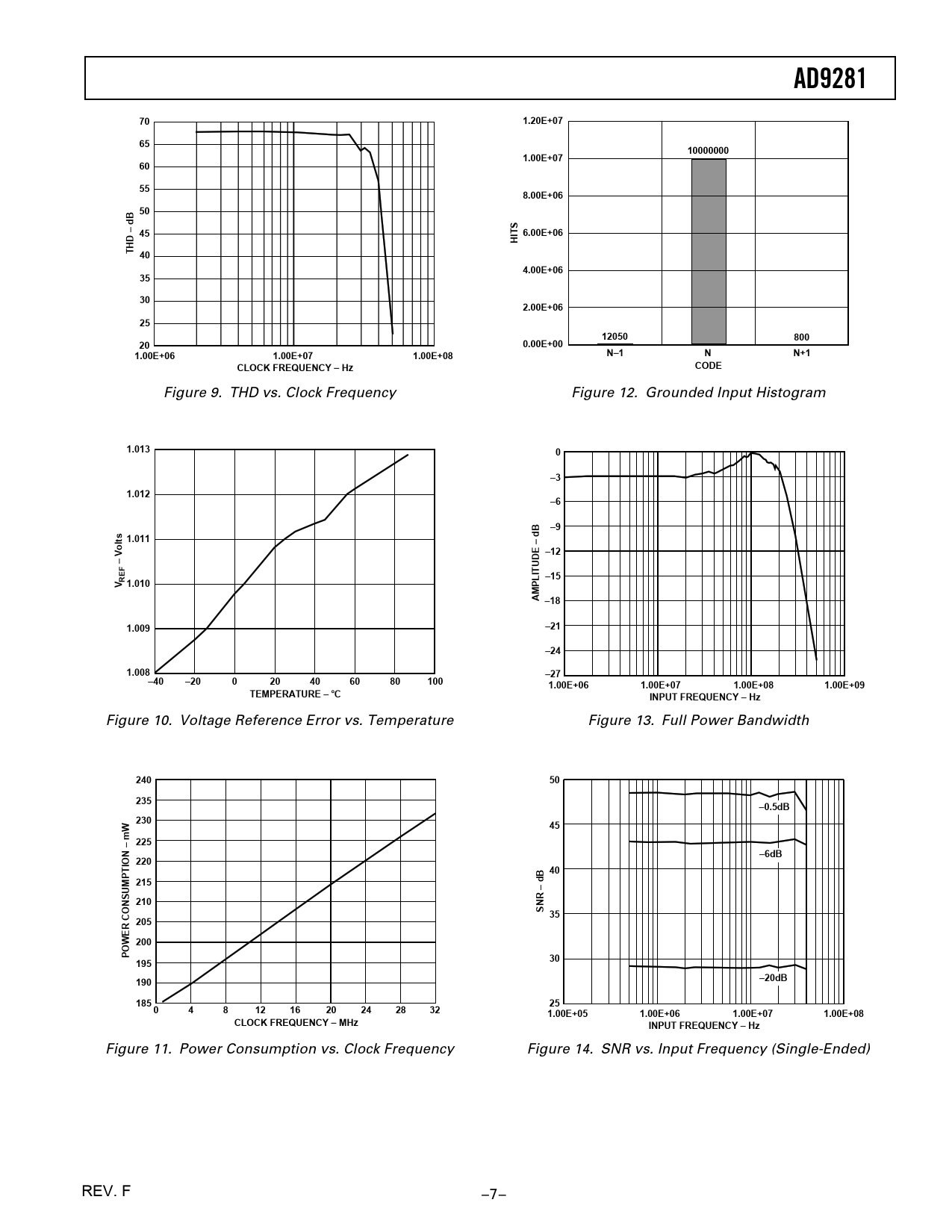 Figure 11. Power Consumption vs. Clock Frequency Figure 14. SNR vs. Input Frequency (Single-Ended) REV. F –7–