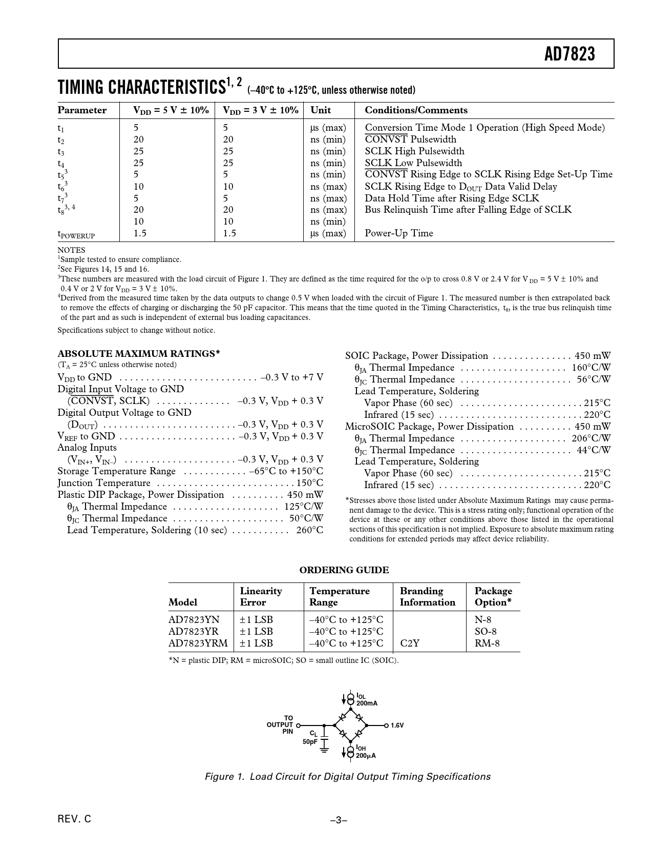 AD7823YN ±1 LSB –40°C to +125°C N-8 AD7823YR ±1 LSB –40°C to +125°C SO-8 AD7823YRM ±1 LSB –40°C to +125°C C2Y RM-8 *N = plastic DIP; RM = microSOIC; SO = small outline IC (SOIC).