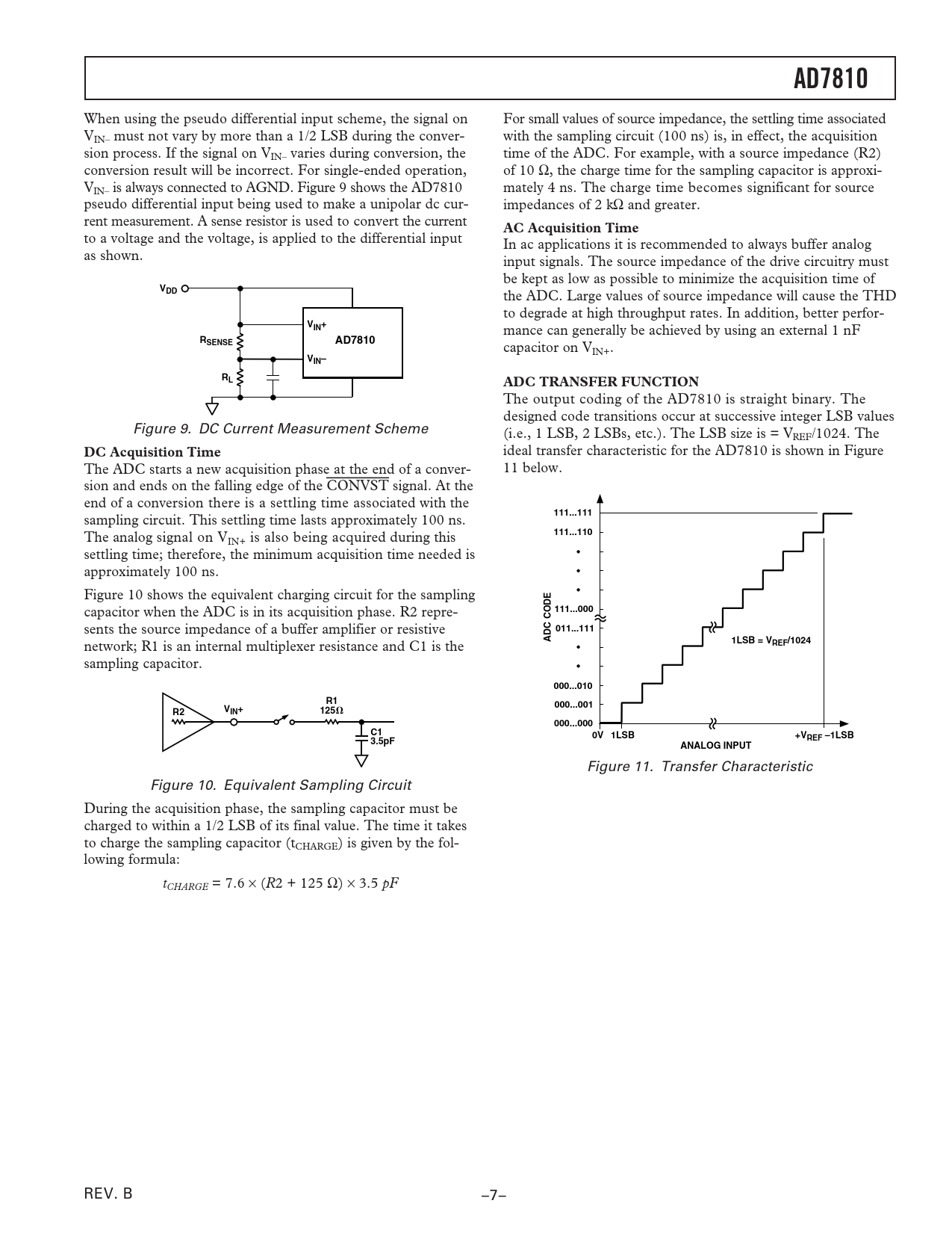 AD7810 AC Acquisition Time VDD VIN+ RSENSE VIN– ADC TRANSFER FUNCTION DC Acquisition Time 111...111 111...110 111...000 011...111