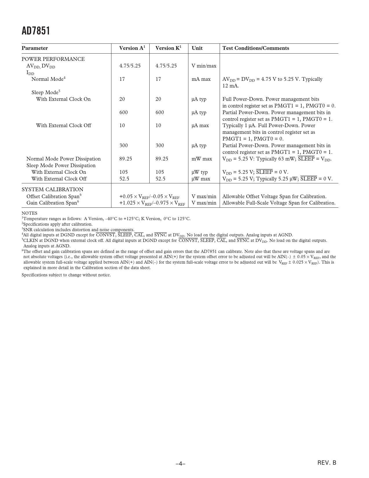 Pages / Page37 / 5 — AD7851. Parameter. Version A1. Version K1. Unit. Test Conditions/Comments