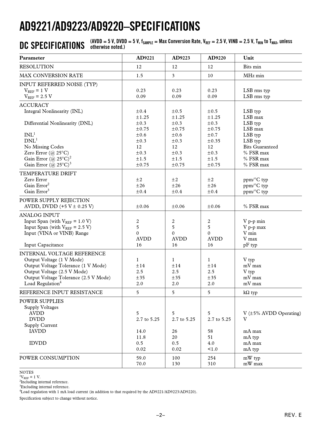 Pages / Page32 / 2 — AD9221/AD9223/AD9220–SPECIFICATIONS