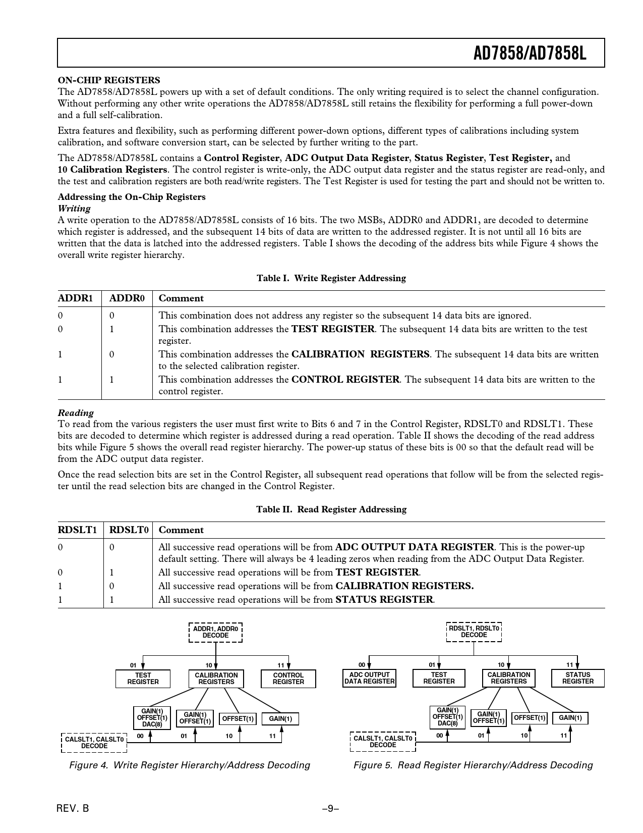 Figure 4. Write Register Hierarchy/Address Decoding Figure 5. Read Register Hierarchy/Address Decoding REV. B –9–