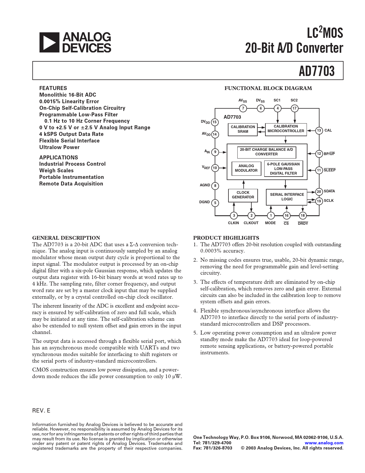 | Pages / Page | 17 / 1 — LC2MOS. 20-Bit A/D Converter. AD7703. FEATURES. FUNCTIONAL BLOCK DIAGRAM. … |