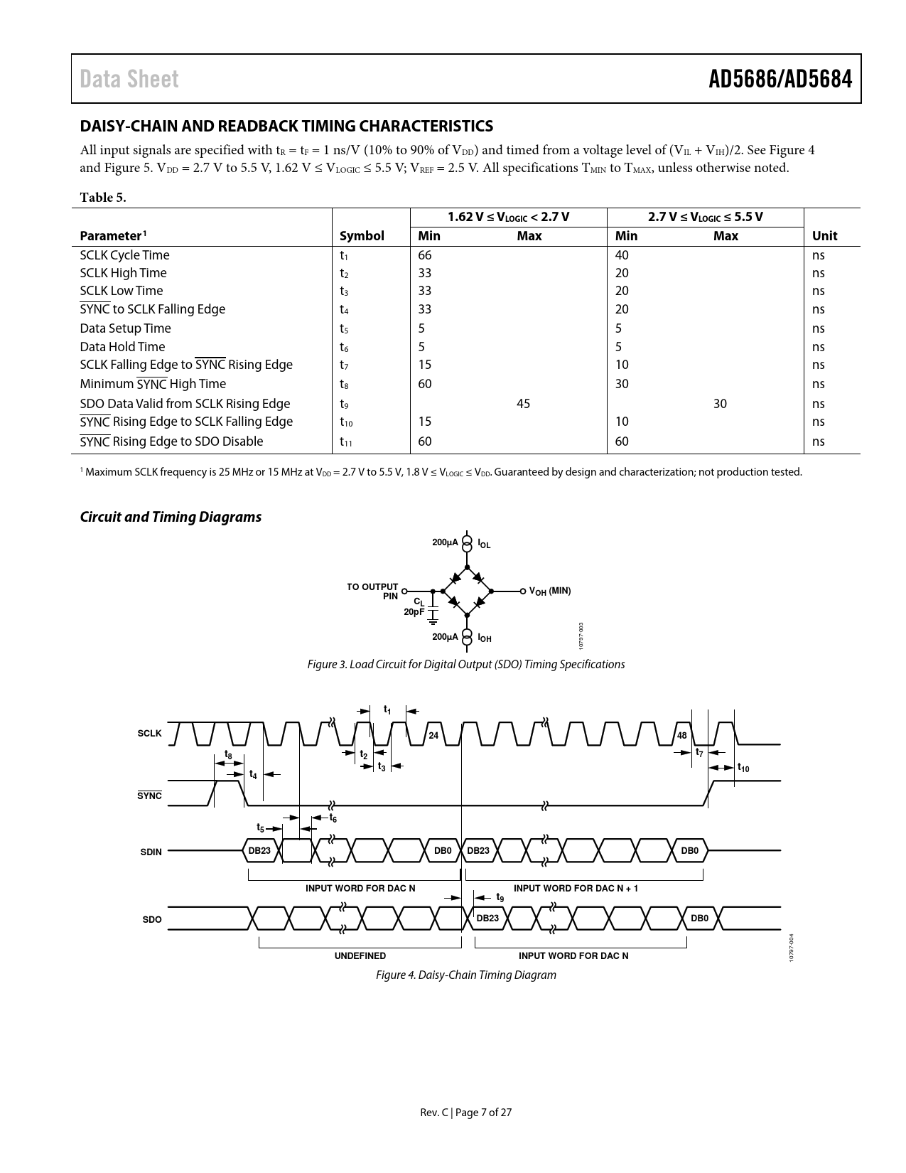 Data Sheet AD5686/AD5684 DAISY-CHAIN AND READBACK TIMING CHARACTERISTICS Table 5 1.62 V ≤ VLOGIC < 2.7 V