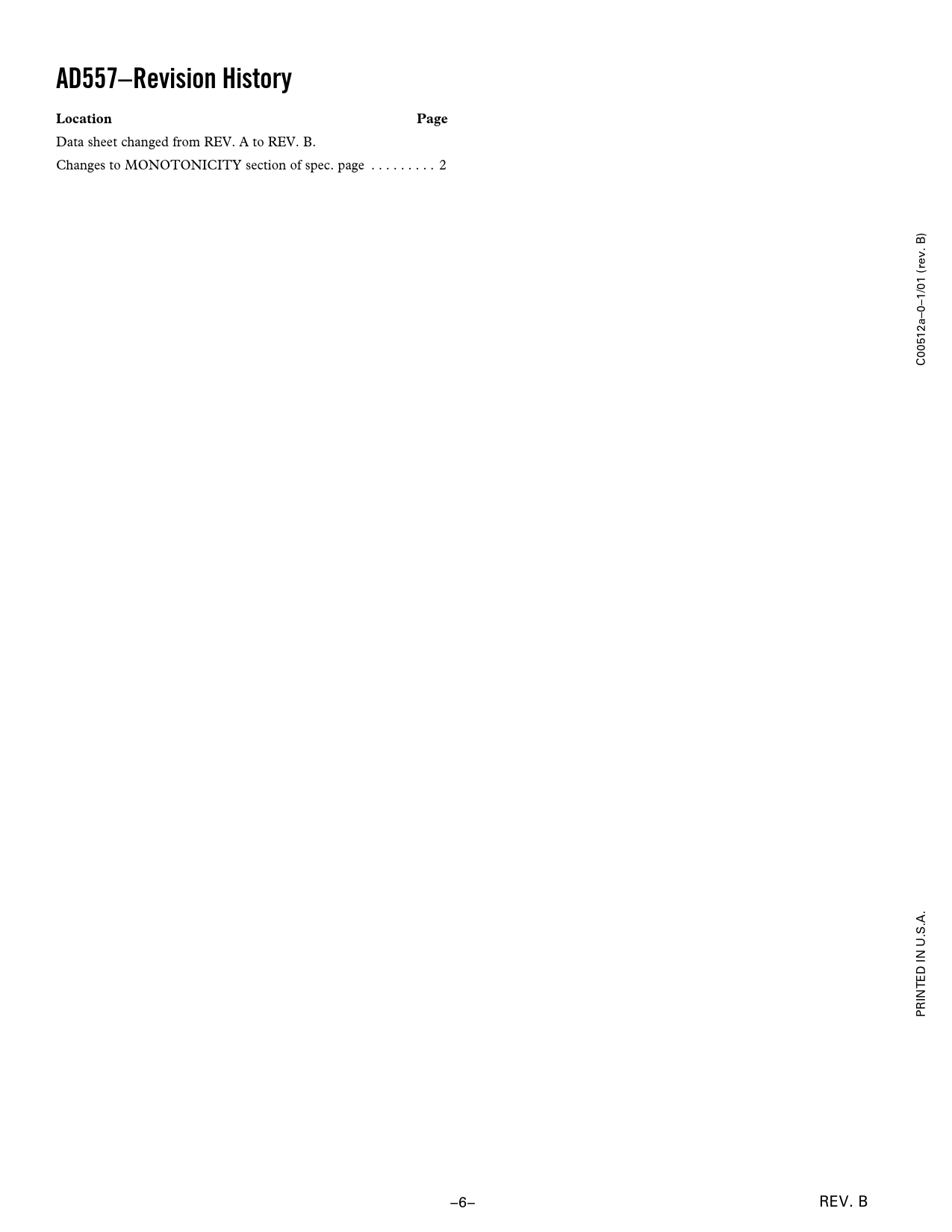 Data sheet changed from REV. A to REV. B. Changes to MONOTONICITY section of spec. page . 2 C00512a–0–1/01 (rev. B) PRINTED IN U.S.A. –6– REV. B