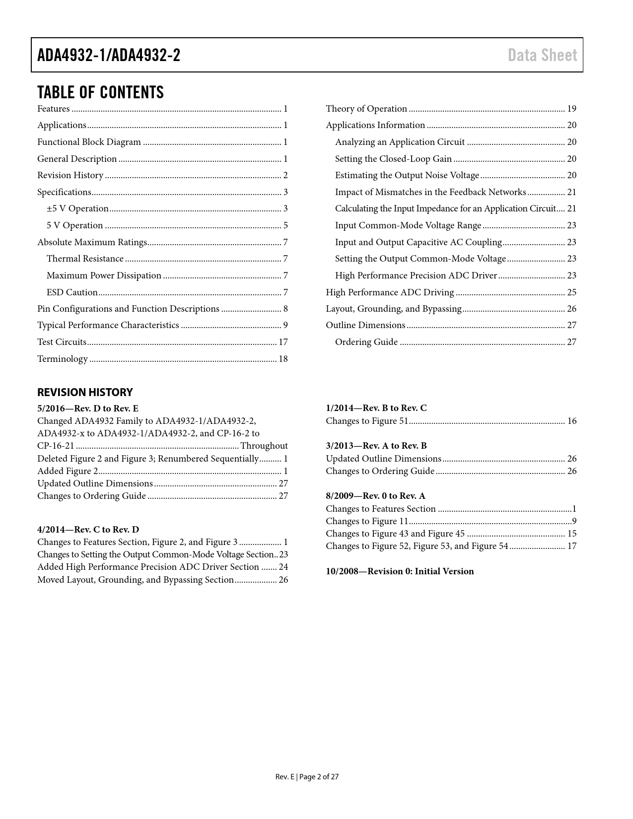 Pages / Page27 / 2 — ADA4932-1/ADA4932-2. Data Sheet. TABLE OF CONTENTS. REVISION HISTORY …