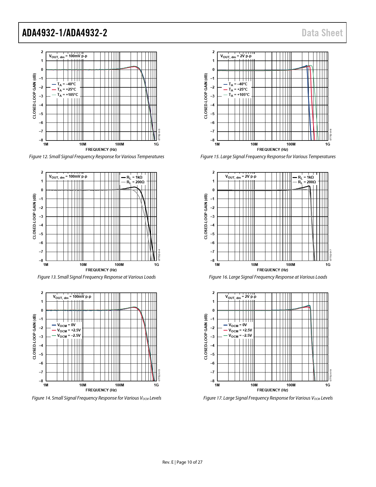 ADA4932-1/ADA4932-2. Data Sheet. VOUT, dm = 100mV p-p. VOUT, dm = 2V p-p. A –2. A = –40°C. TA = +25°C. TA = +105°C. OOP. D –4. OS –5. 10M. 100M