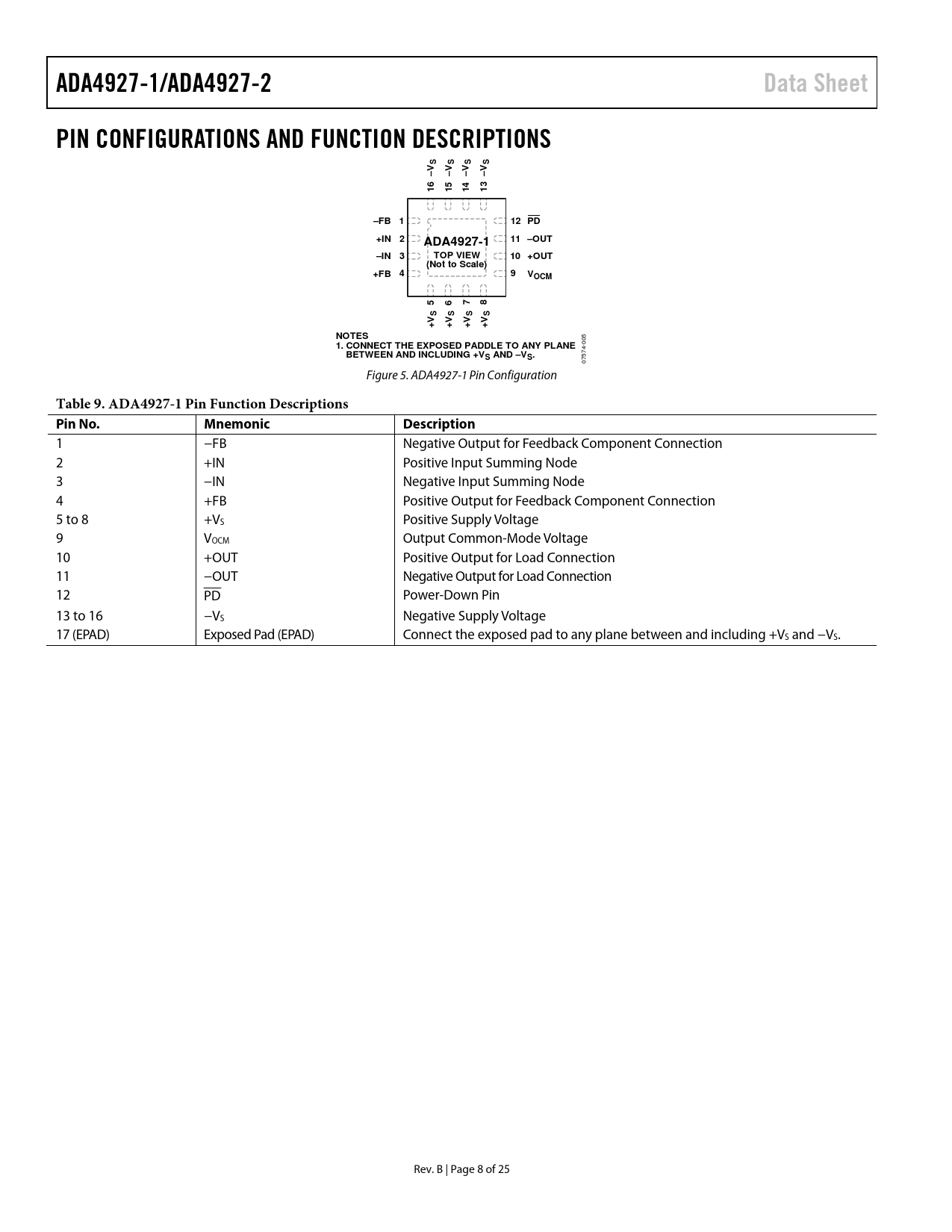 Pages / Page25 / 8 — ADA4927-1/ADA4927-2. Data Sheet. PIN CONFIGURATIONS AND FUNCTION …
