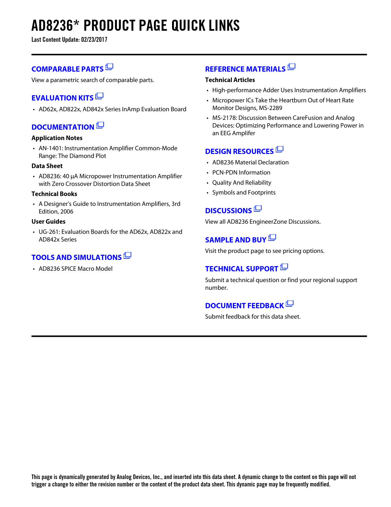 This page is dynamically generated by Analog Devices, Inc., and inserted into this data sheet. A dynamic change to the content on this page will not trigger a change to either the revision number or the content of the product data sheet. This dynamic page may be frequently modified.