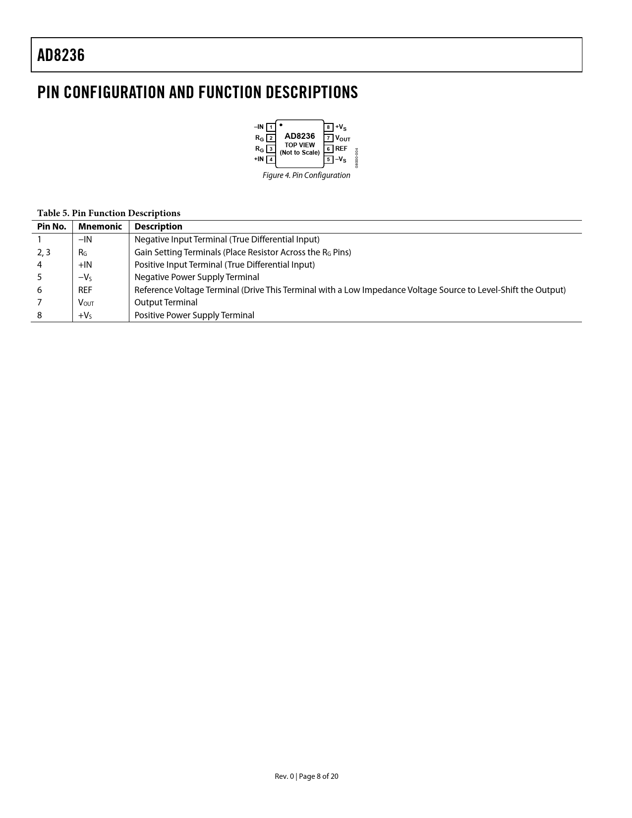 AD8236. PIN CONFIGURATION AND FUNCTION DESCRIPTIONS. –IN 1. 8 +VS. 7 VOUT. TOP VIEW. 6 REF. (Not to Scale). +IN 4. 5 –VS