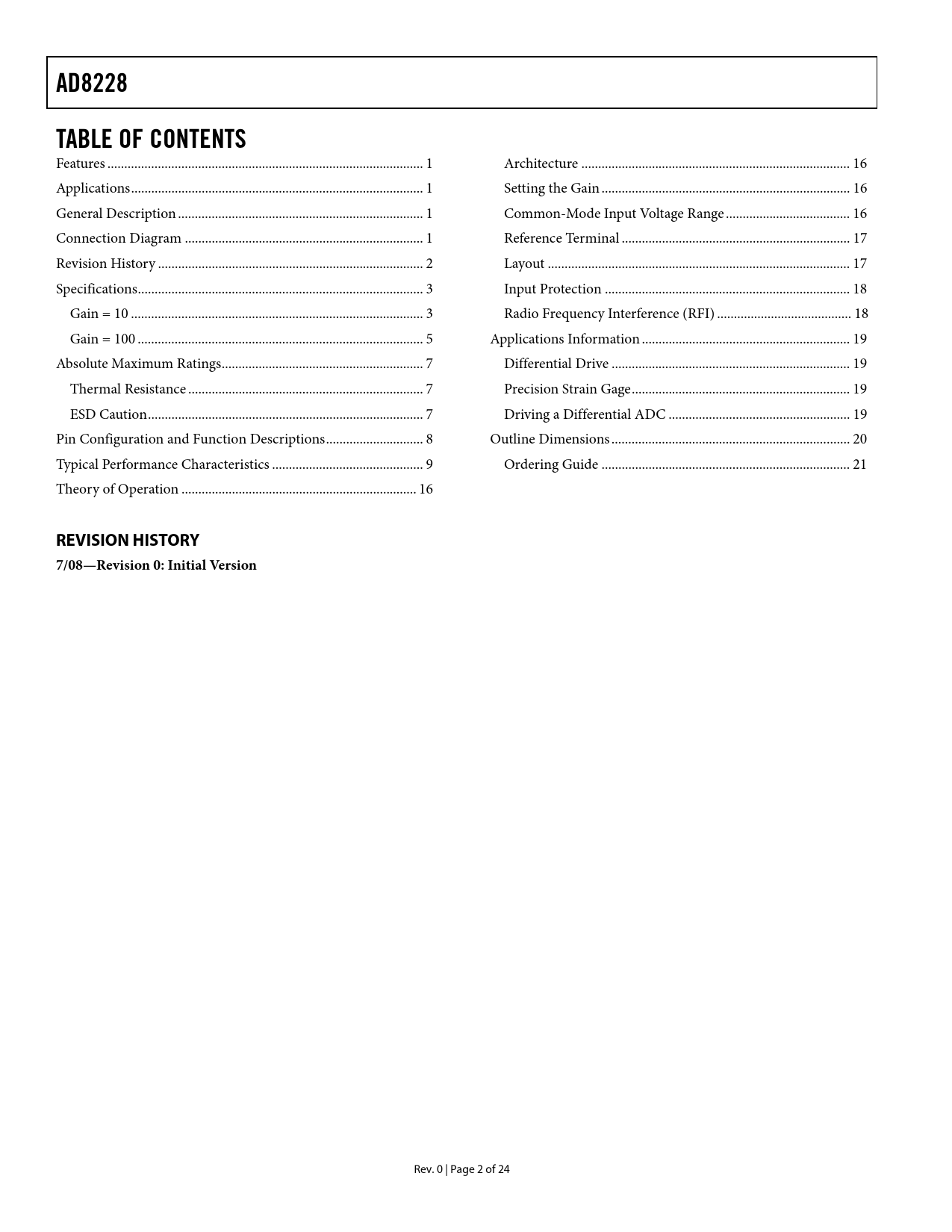 Pages / Page25 / 3 — AD8228. TABLE OF CONTENTS. REVISION HISTORY. 7/08—Revision 0: Initial …
