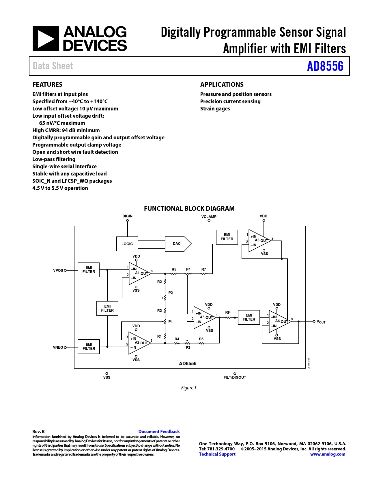 Digital y Programmable Sensor Signal. Amplifier with EMI Filters. Data Sheet. AD8556. FEATURES. APPLICATIONS