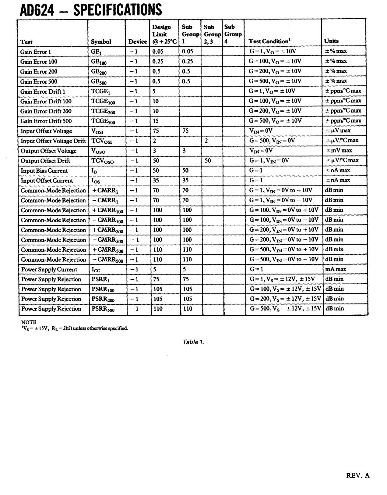 Datasheet AD624 (Analog Devices)