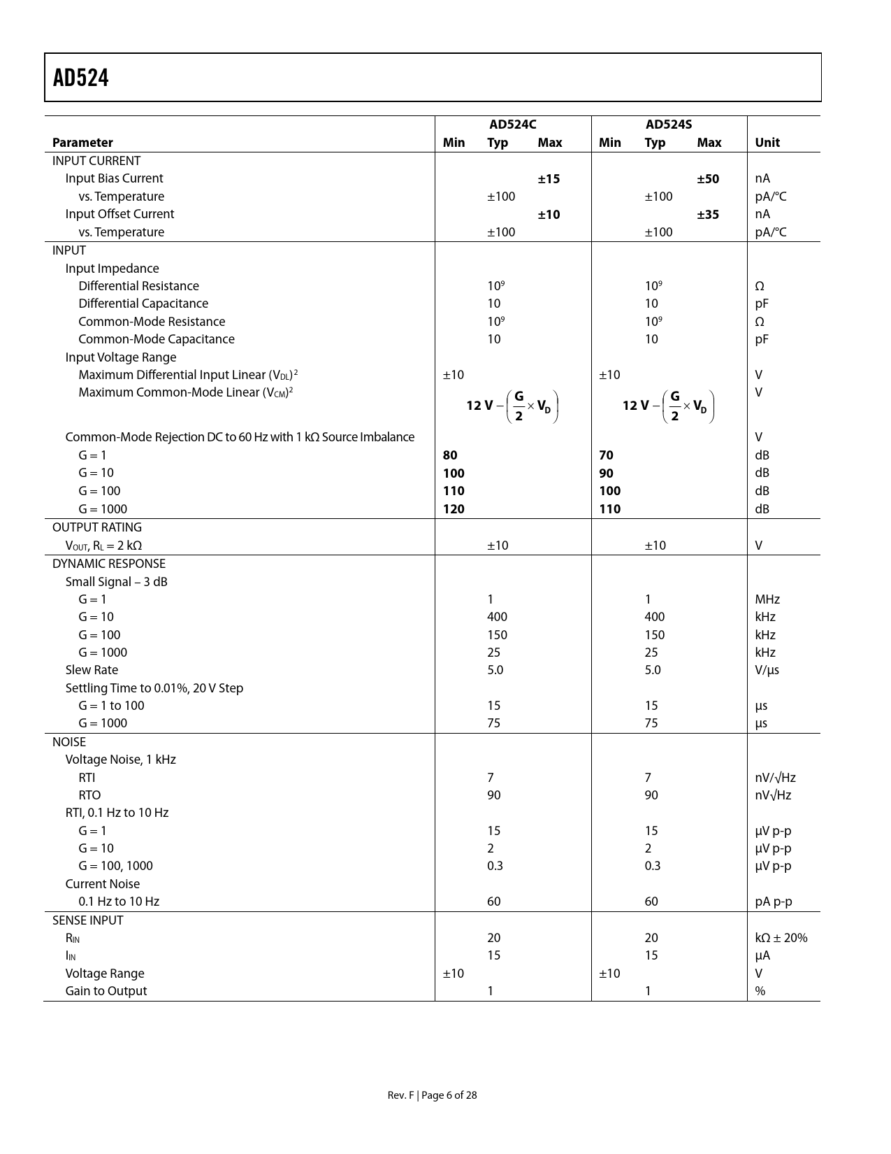 AD524 AD524C AD524S Parameter Min Typ Max Min Typ Max Unit