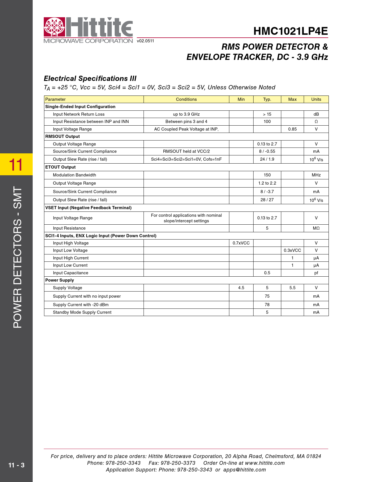 HMC1021LP4E. RMS POWER DETECTOR &. ENVELOPE TRACKER, DC - 3.9 GHz. Electrical Specifications III