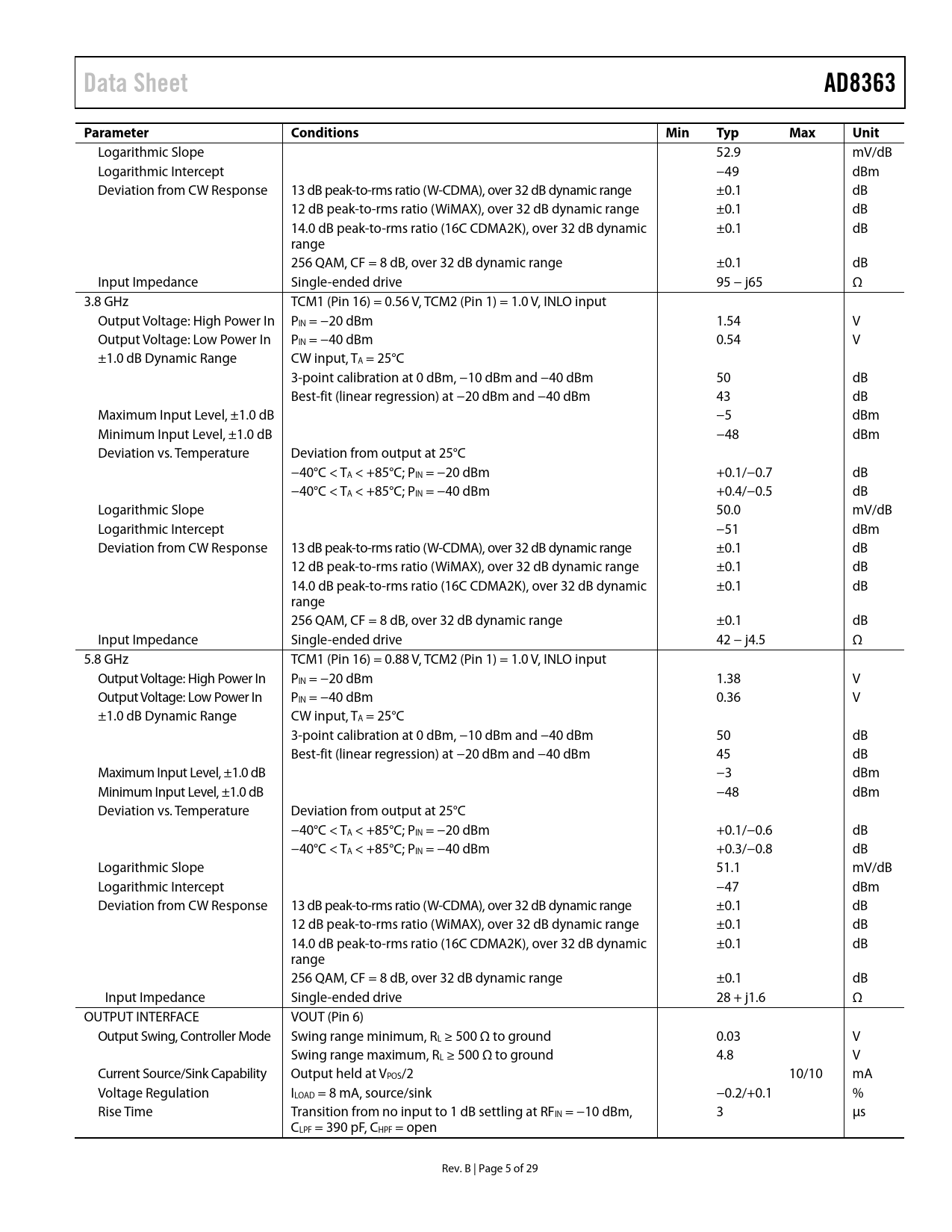 Data Sheet AD8363 Parameter Conditions Min Typ Max Unit
