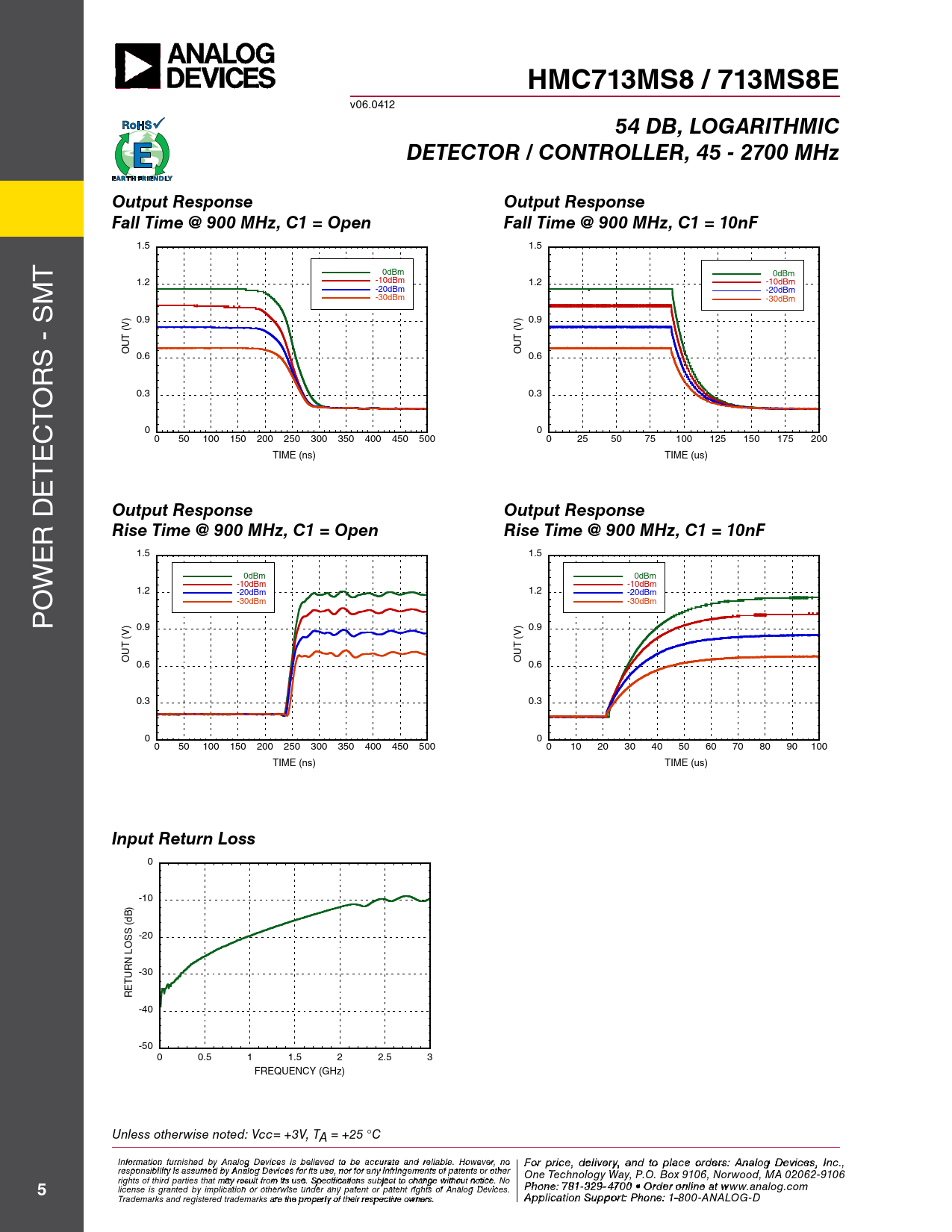 HMC713MS8 / 713MS8E 54 DB, LOGARITHMIC DETECTOR / CONTROLLER, 45 - 2700 MHz Output Response Fall Time @ 900 MHz, C1 = Open