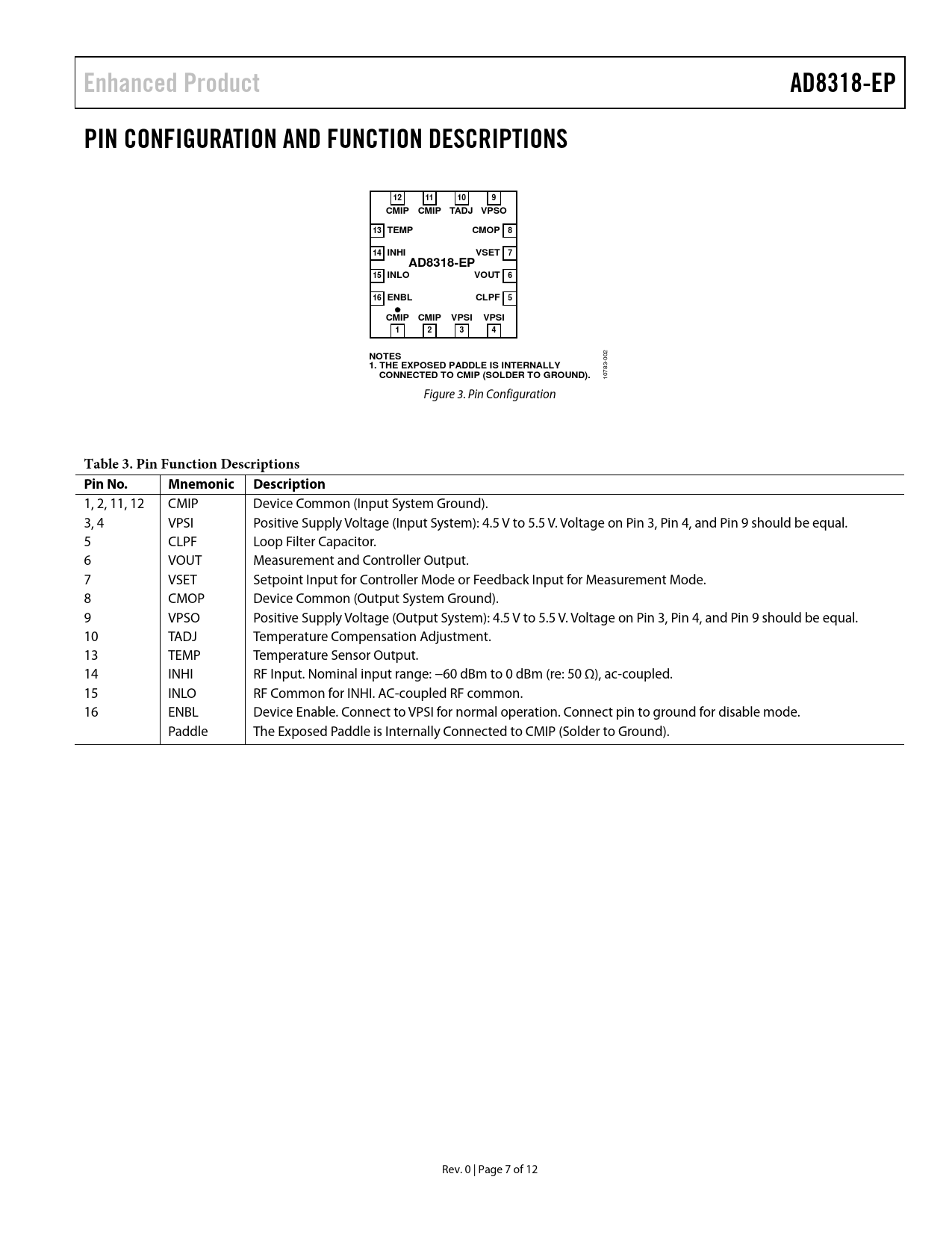 Pages / Page12 / 7 — Enhanced Product. AD8318-EP. PIN CONFIGURATION AND FUNCTION DESCRIPTIONS. …