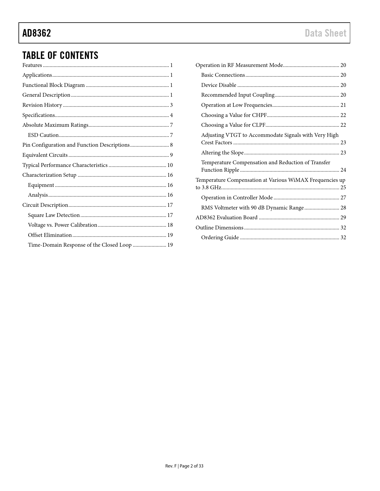 Pages / Page34 / 3 — AD8362. Data Sheet. TABLE OF CONTENTS