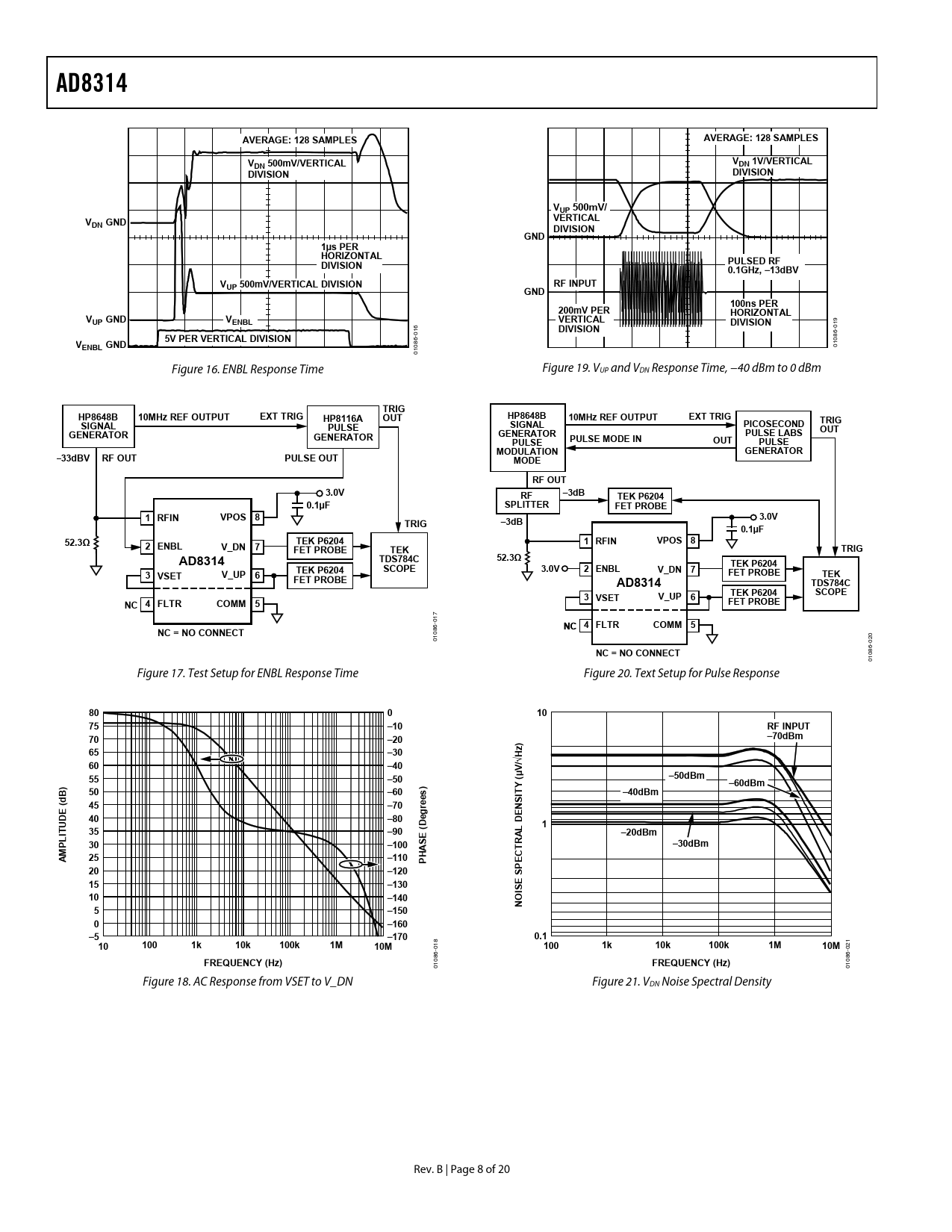 TRIG HP8648B 10MHz REF OUTPUT EXT TRIG HP8116A OUT HP8648B 10MHz REF OUTPUT EXT TRIG TRIG SIGNAL PULSE SIGNAL PICOSECOND OUT GENERATOR GENERATOR GENERATOR PULSE LABS PULSE PULSE MODE IN OUT PULSE MODULATION GENERATOR –33dBV RF OUT PULSE OUT MODE RF OUT 3.0V –3dB RF TEK P6204 0.1µF SPLITTER FET PROBE 1 RFIN VPOS 8 3.0V TRIG –3dB 0.1µF 52.3Ω TEK P6204 1 RFIN VPOS 8 2 ENBL V_DN 7 FET PROBE TEK TRIG AD8314 TDS784C 52.3Ω TEK P6204 TEK P6204 SCOPE 3.0V 2 ENBL V_DN 7 3 VSET V_UP 6 FET PROBE TEK FET PROBE AD8314 TDS784C TEK P6204 SCOPE 3 VSET V_UP 6 NC 4 FLTR COMM 5 FET PROBE