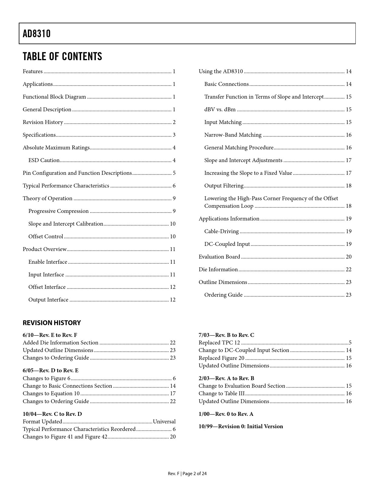 Pages / Page25 / 3 — AD8310. TABLE OF CONTENTS. REVISION HISTORY. 6/10—Rev. E to Rev. F. …