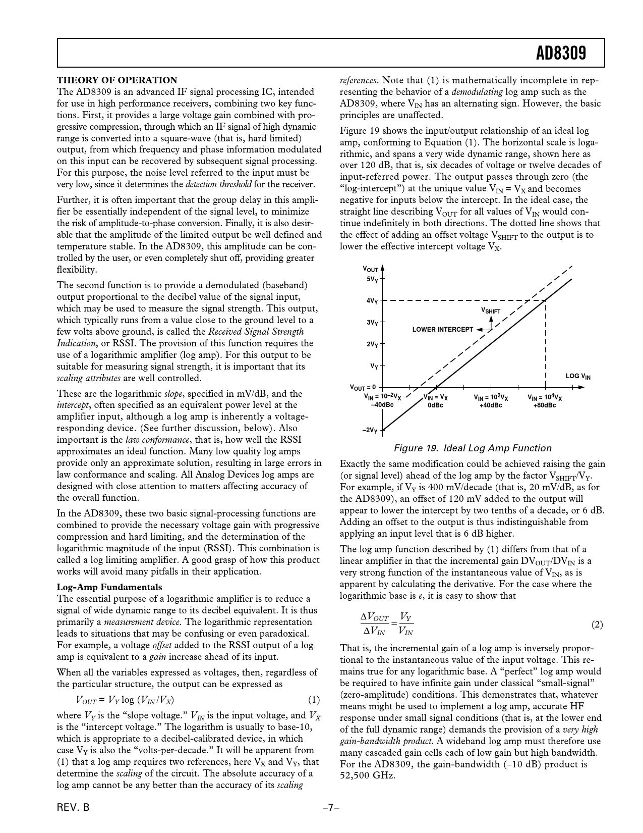 AD8309 THEORY OF OPERATION VOUT 4VY VSHIFT 3VY LOWER INTERCEPT 2VY LOG VIN VOUT = 0 VIN = 10–2VX IN = VX IN = 102VX VIN = 104VX