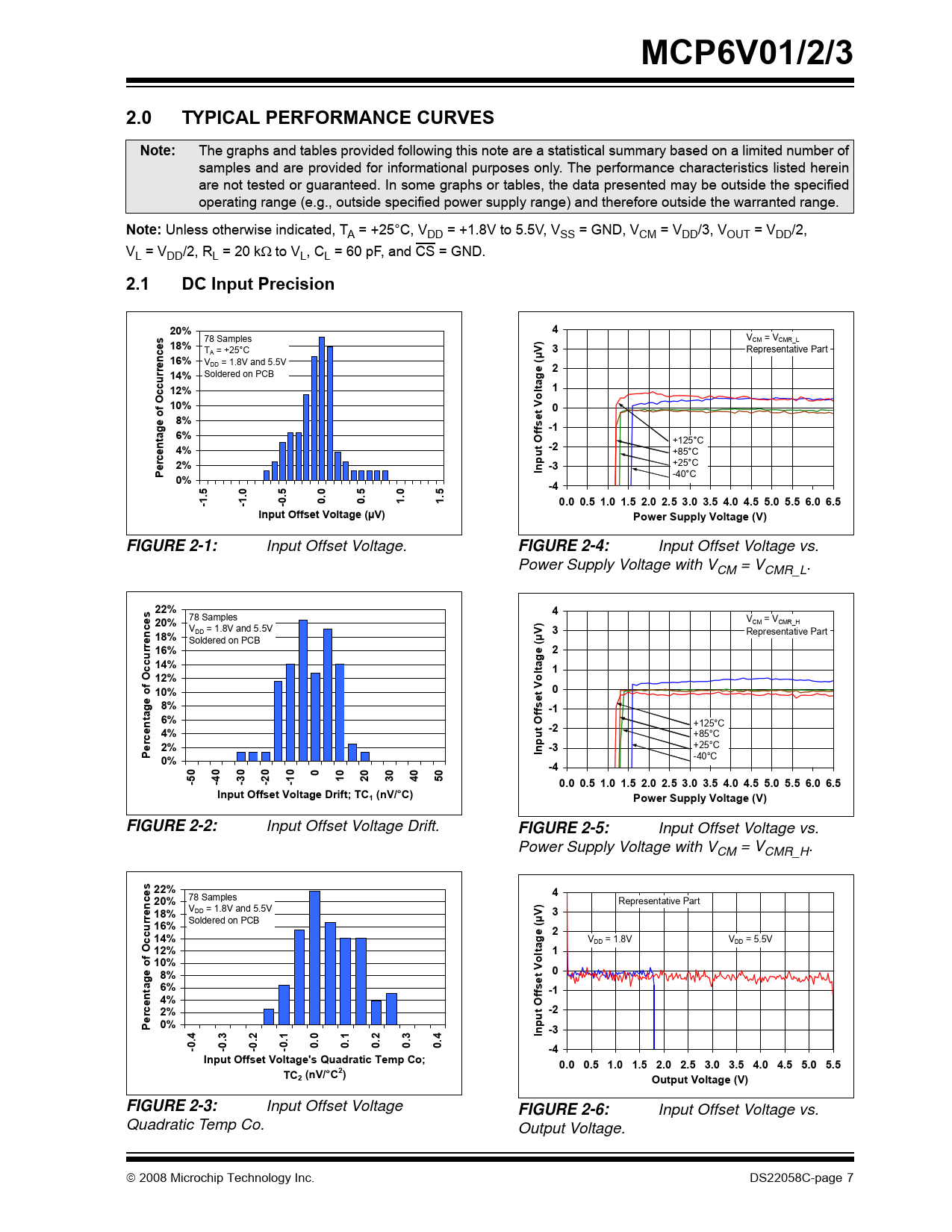 MCP6V01/2/3. 2.0. TYPICAL PERFORMANCE CURVES. Note:. 2.1. DC Input Precision. 20%. es 18%. V 3. 16%. rre. e 2. 14%. ccu 12%. lta 1. f O 10%. t V 0. e o