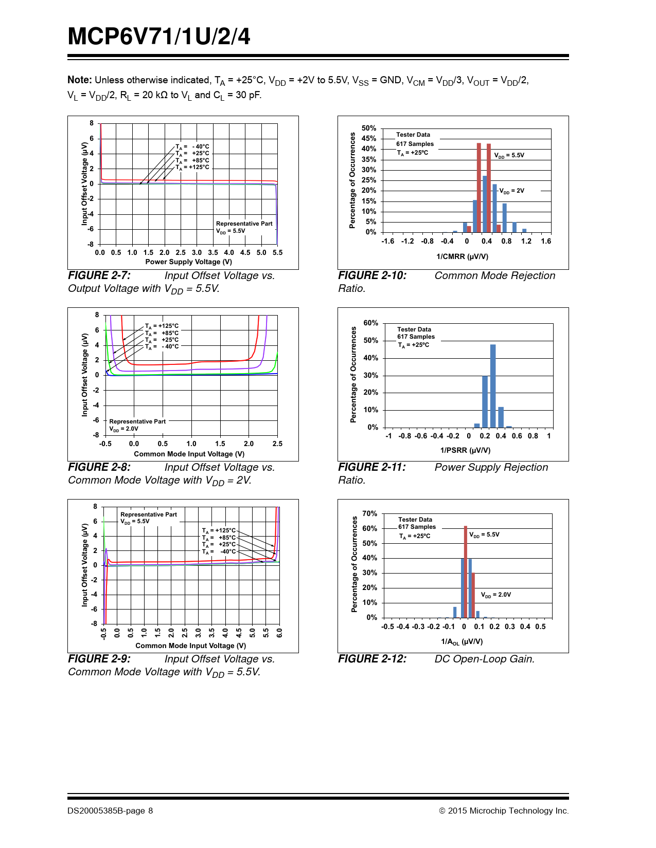 MCP6V71/1U/2/4. Note:. 50%. Tester Data. 45%. T = - 40°C. 617 Samples. 40%. (µV) 4. T = +25°C. T = +25ºC. = 5.5V. T = +85°C. 35%. T = +125°C. ltage