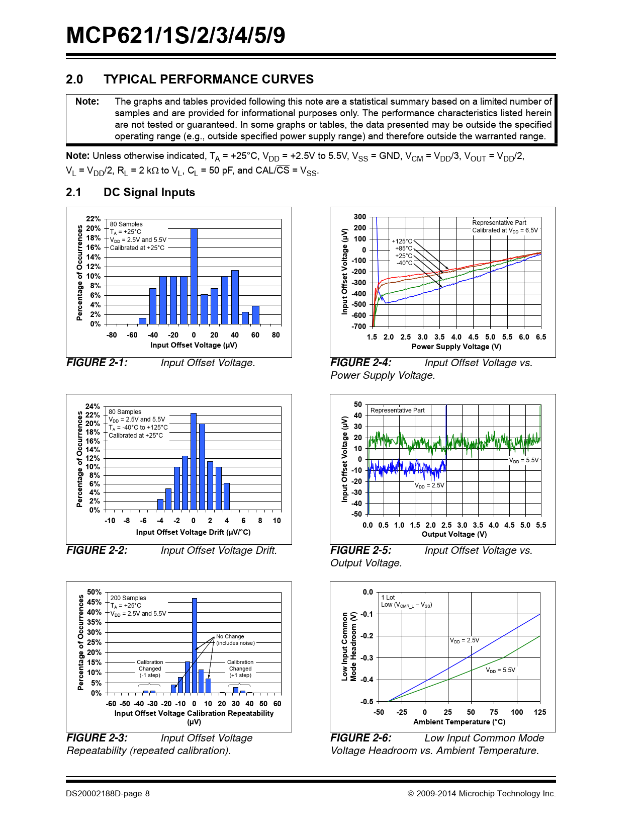 Pages / Page62 / 8 — MCP621/1S/2/3/4/5/9. 2.0. TYPICAL PERFORMANCE CURVES. Note:. 2.1. DC …