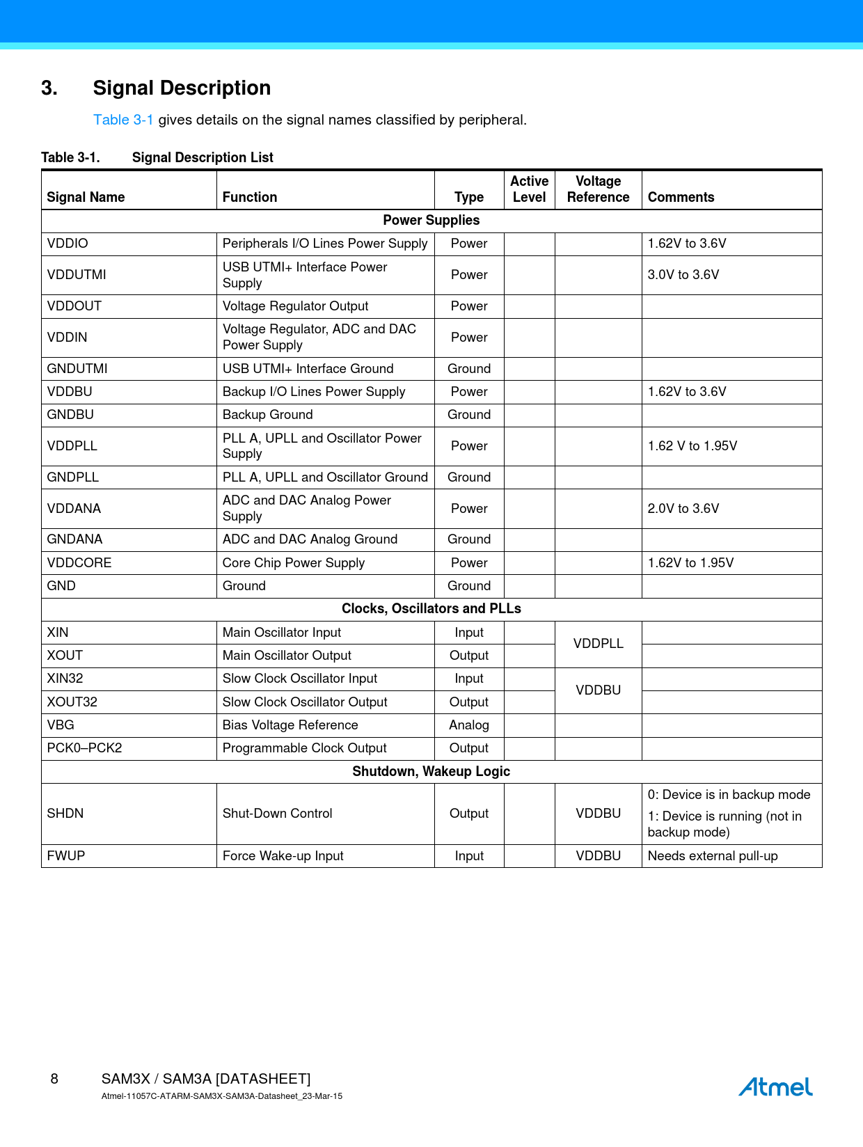 Table 3-1. Signal Description List Active Voltage Signal Name Function Type Level Reference Comments Power Supplies